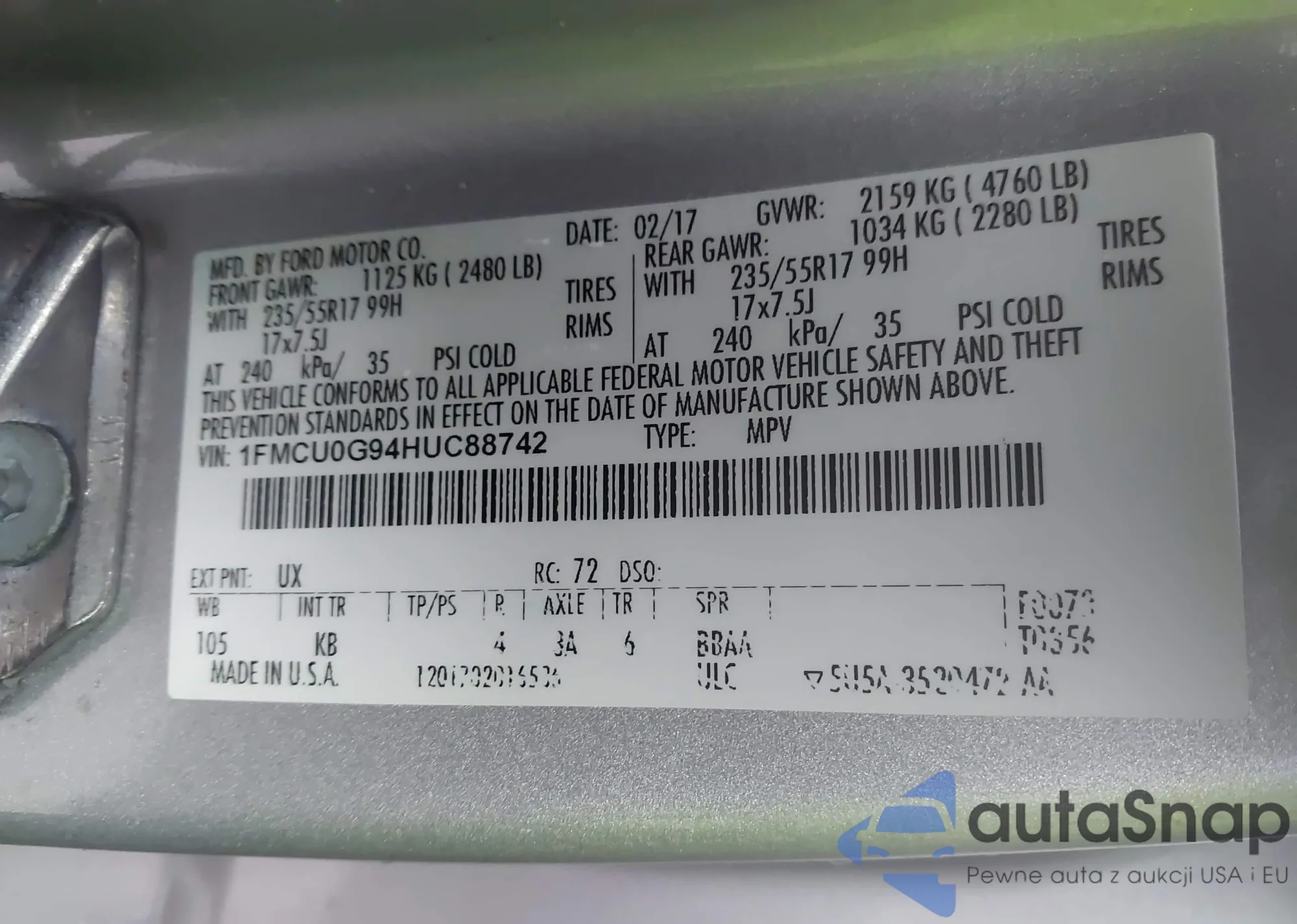LOT: 44127508 VIN: 1FTLR4FE2APA75711