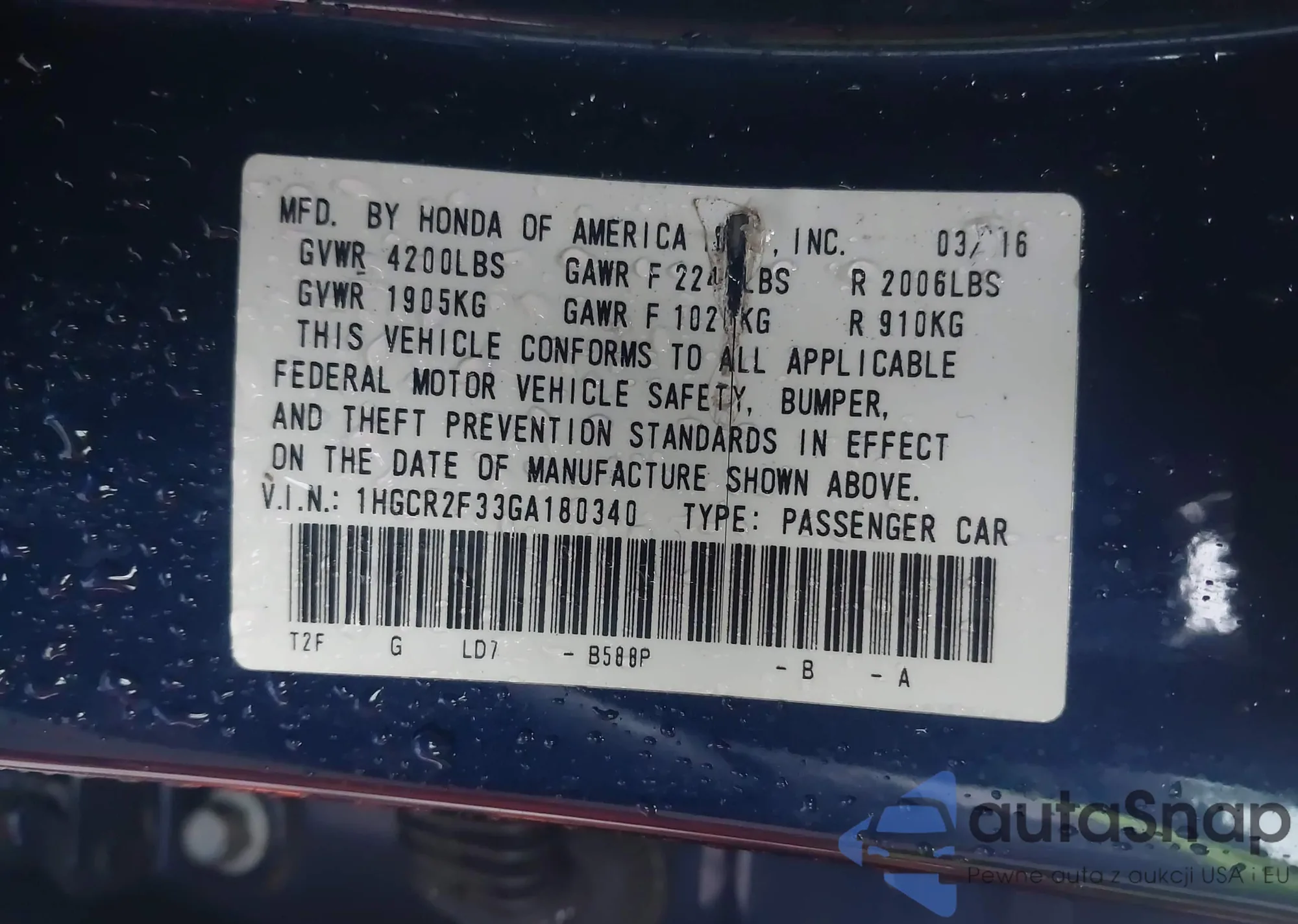 LOT: 44317783 VIN: 1HGFA165X7L066386
