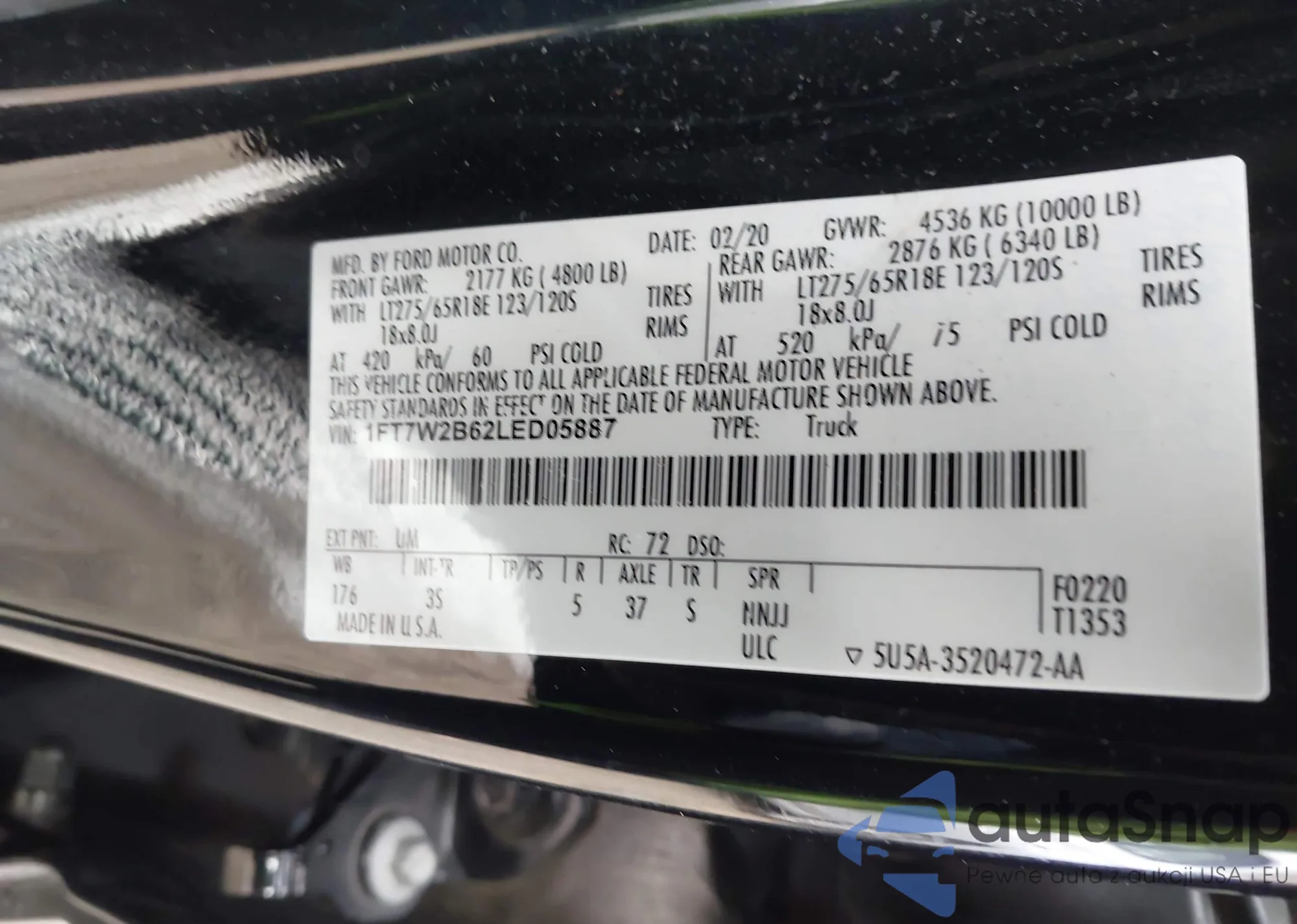 LOT: 43886125 VIN: 1FT7W2B62LED05887