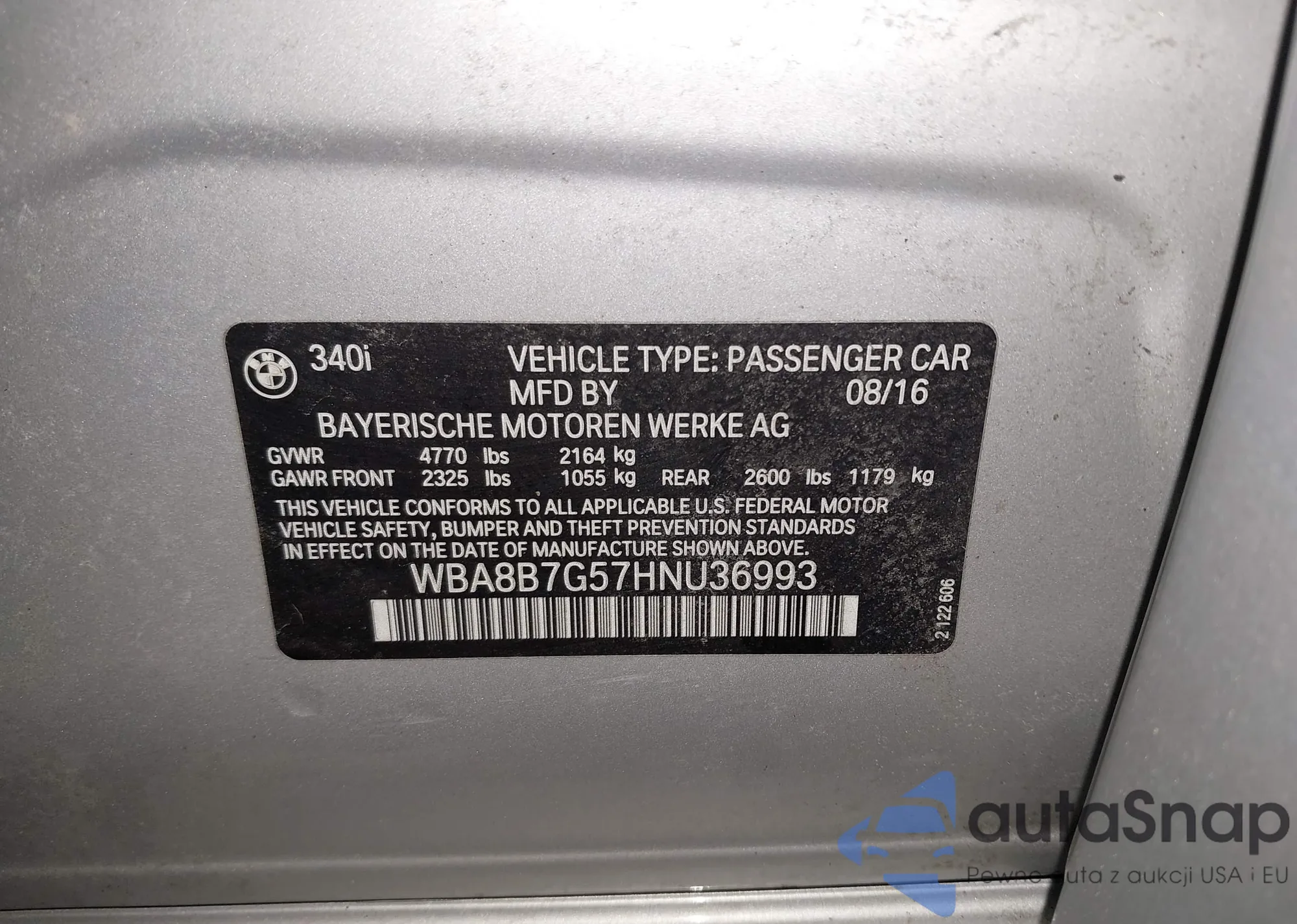 • VIN WBA8B7G57HNU36993
