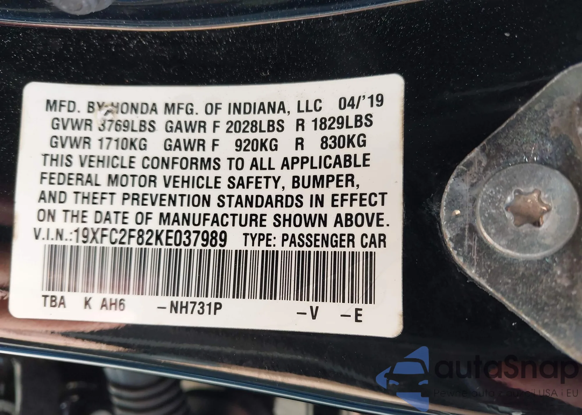 • VIN 2HGFC2F64LH540431