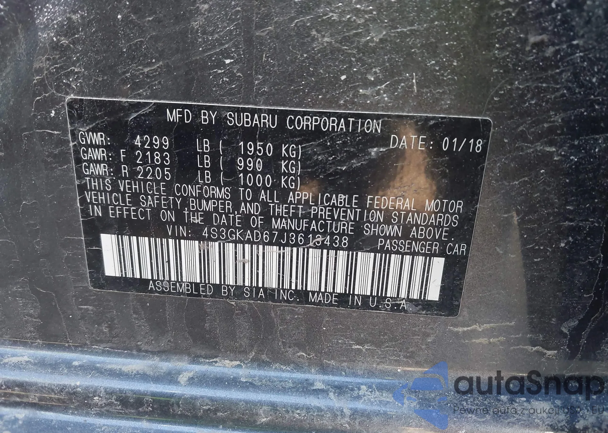 • VIN 4S3GKAD67J3613438