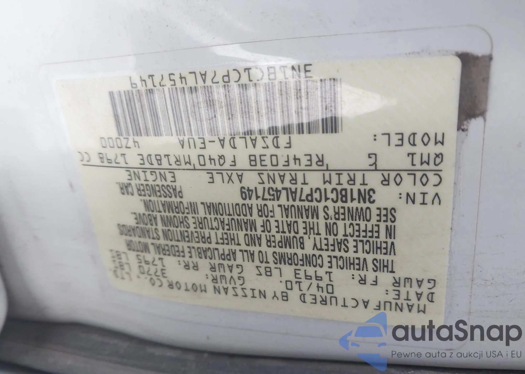 • VIN 3N1BC1CP7AL457149