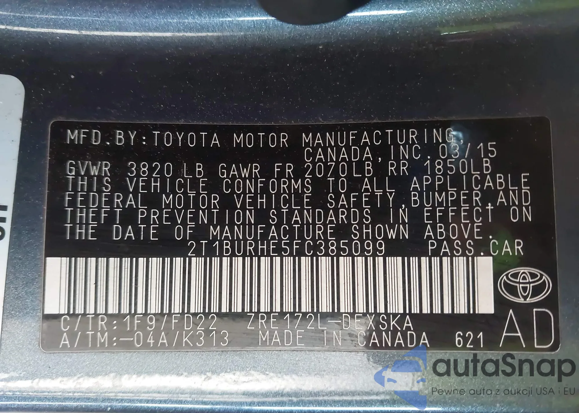 • VIN 2T1BURHE5FC385099