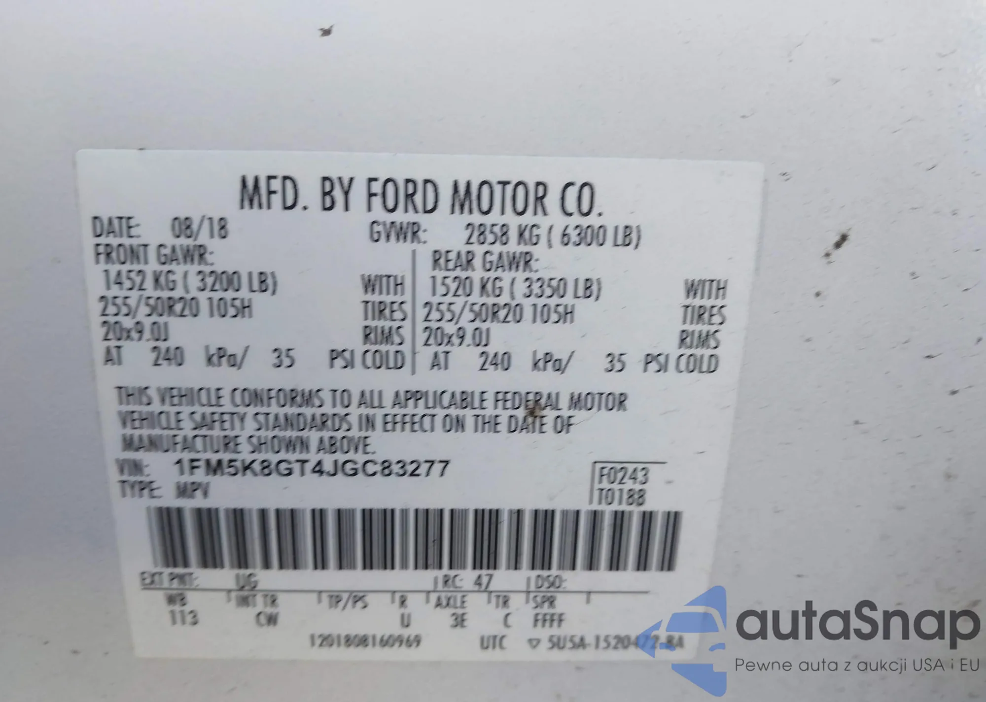 LOT: 43912583 VIN: 1FM5K8GT4JGC83277