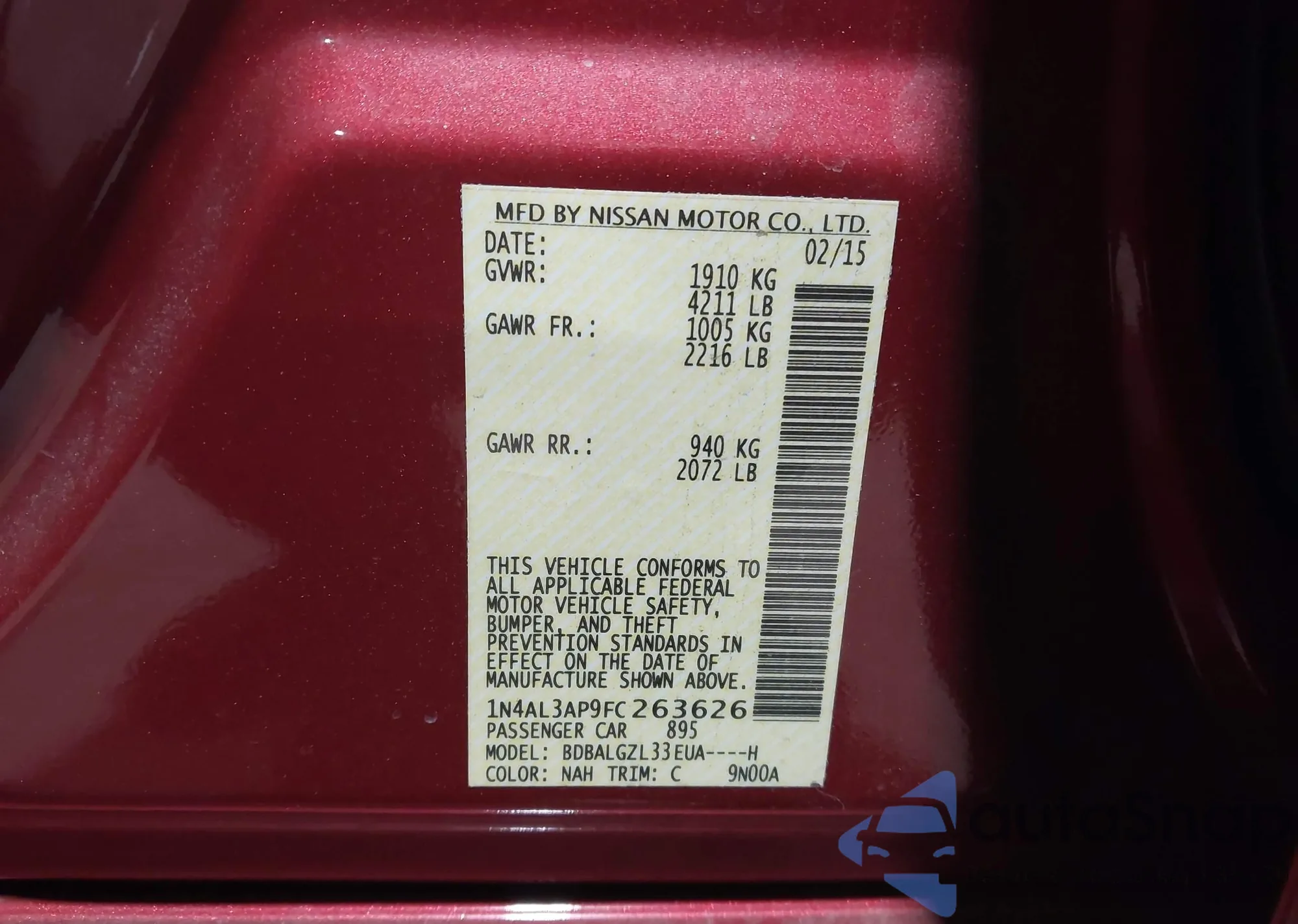 LOT: 44060580 VIN: 1N4AL3AP9FC263626