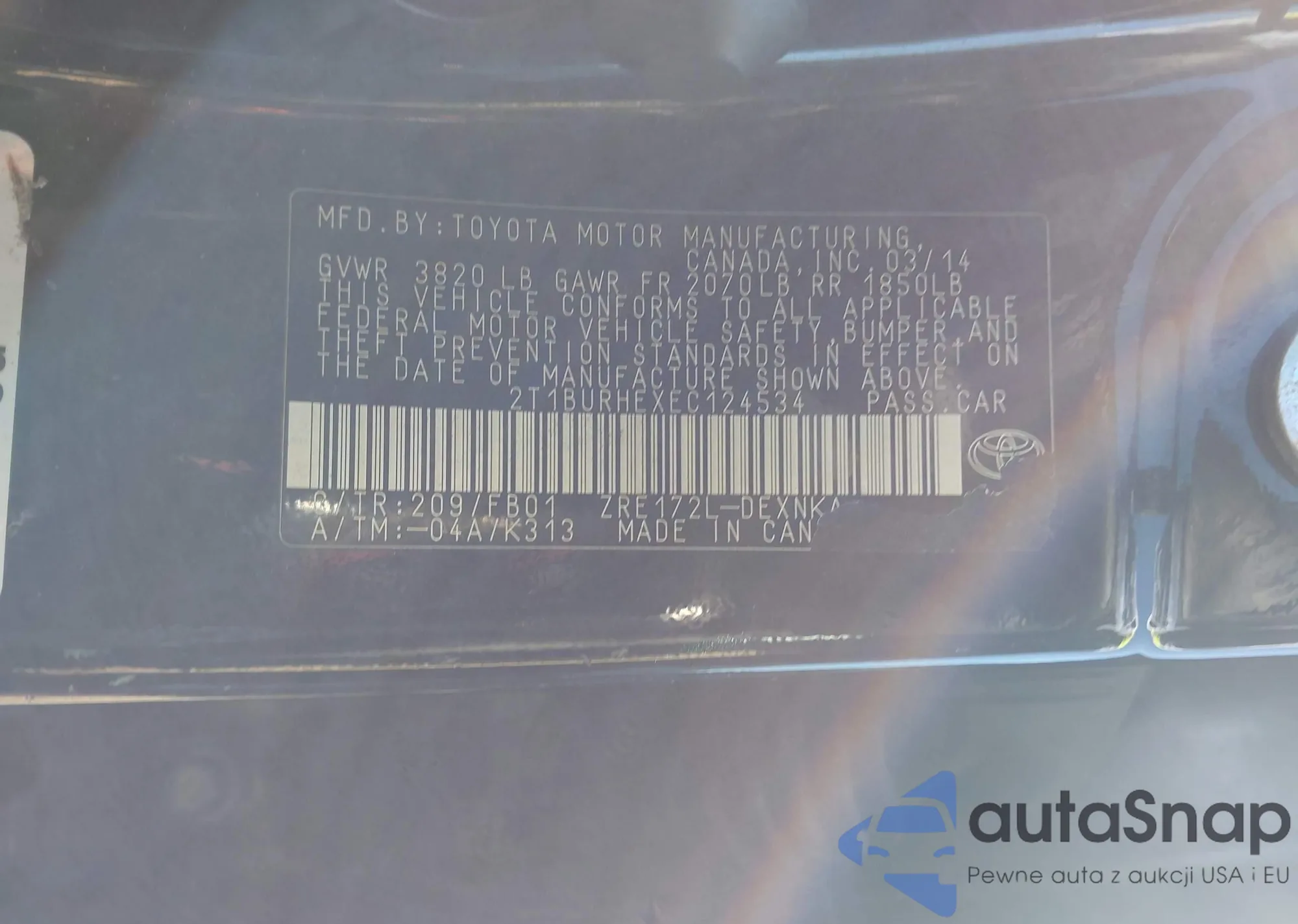 • VIN 2T1BURHEXEC124534