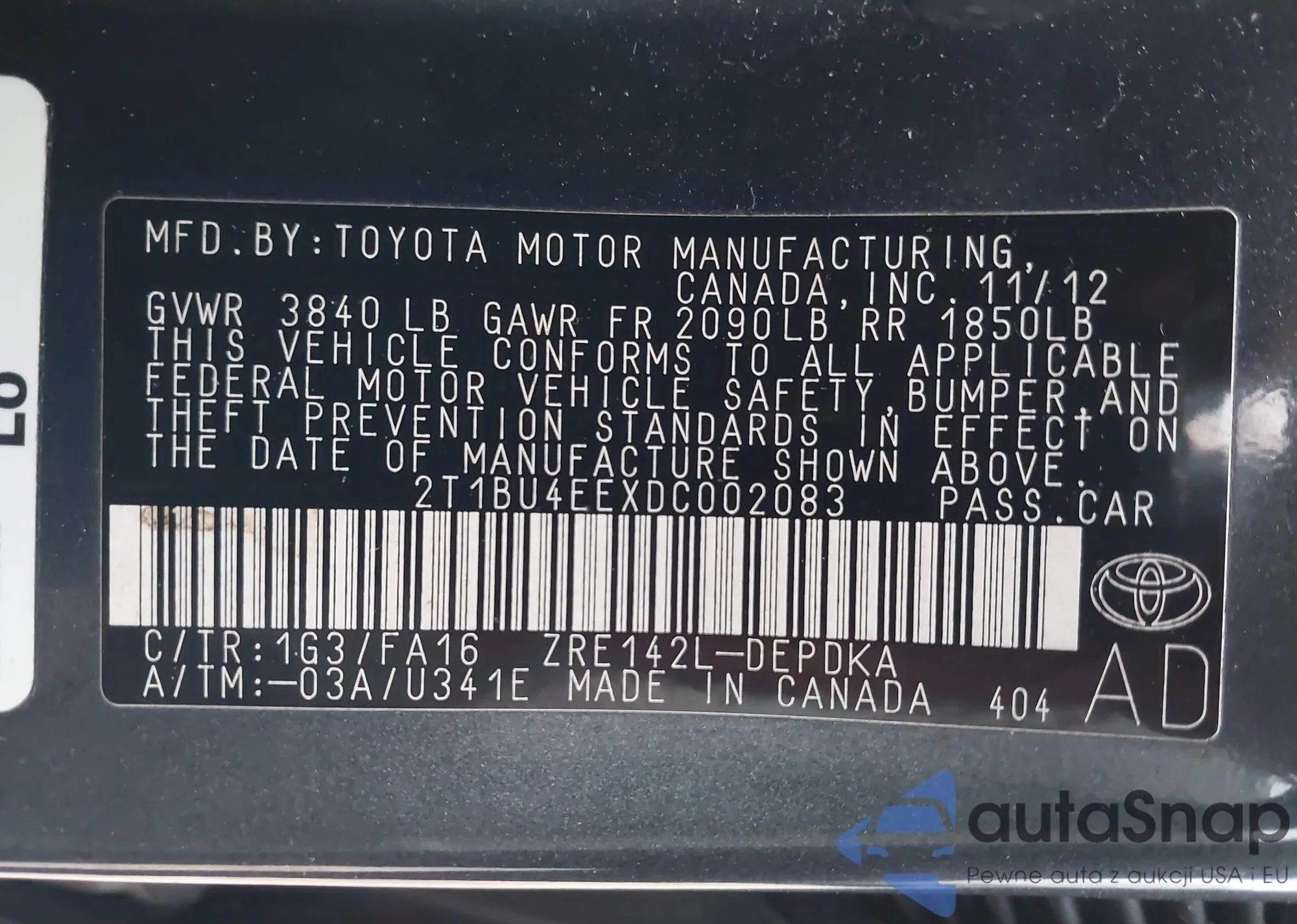 • VIN 4T1BF1FK3FU008404
