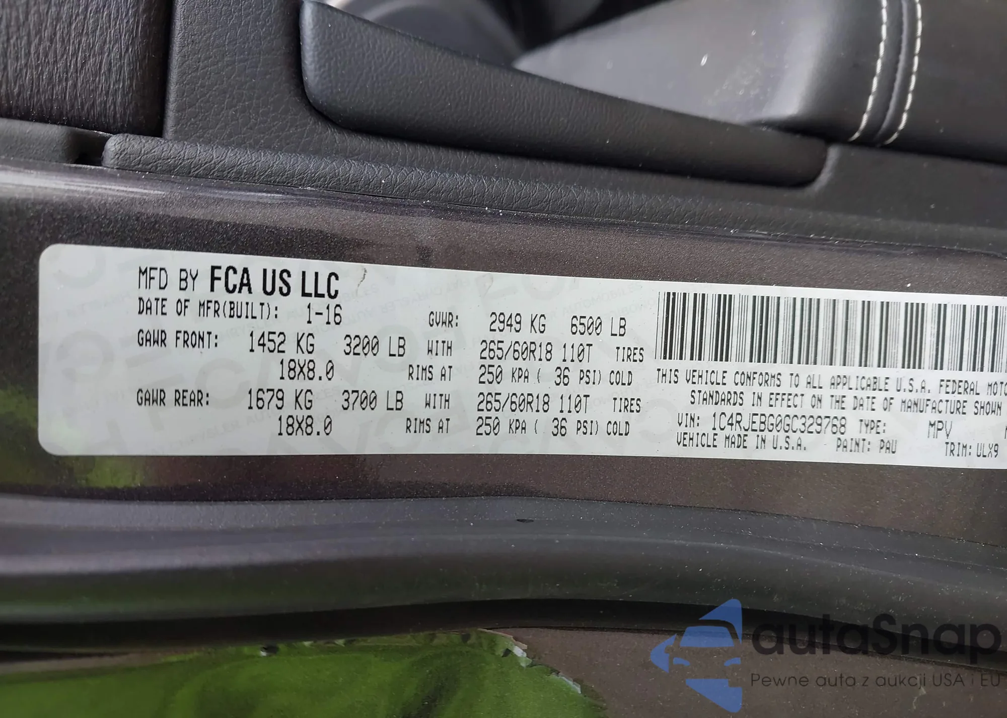 LOT: 44112284 VIN: 1C4RJEBG0GC329768