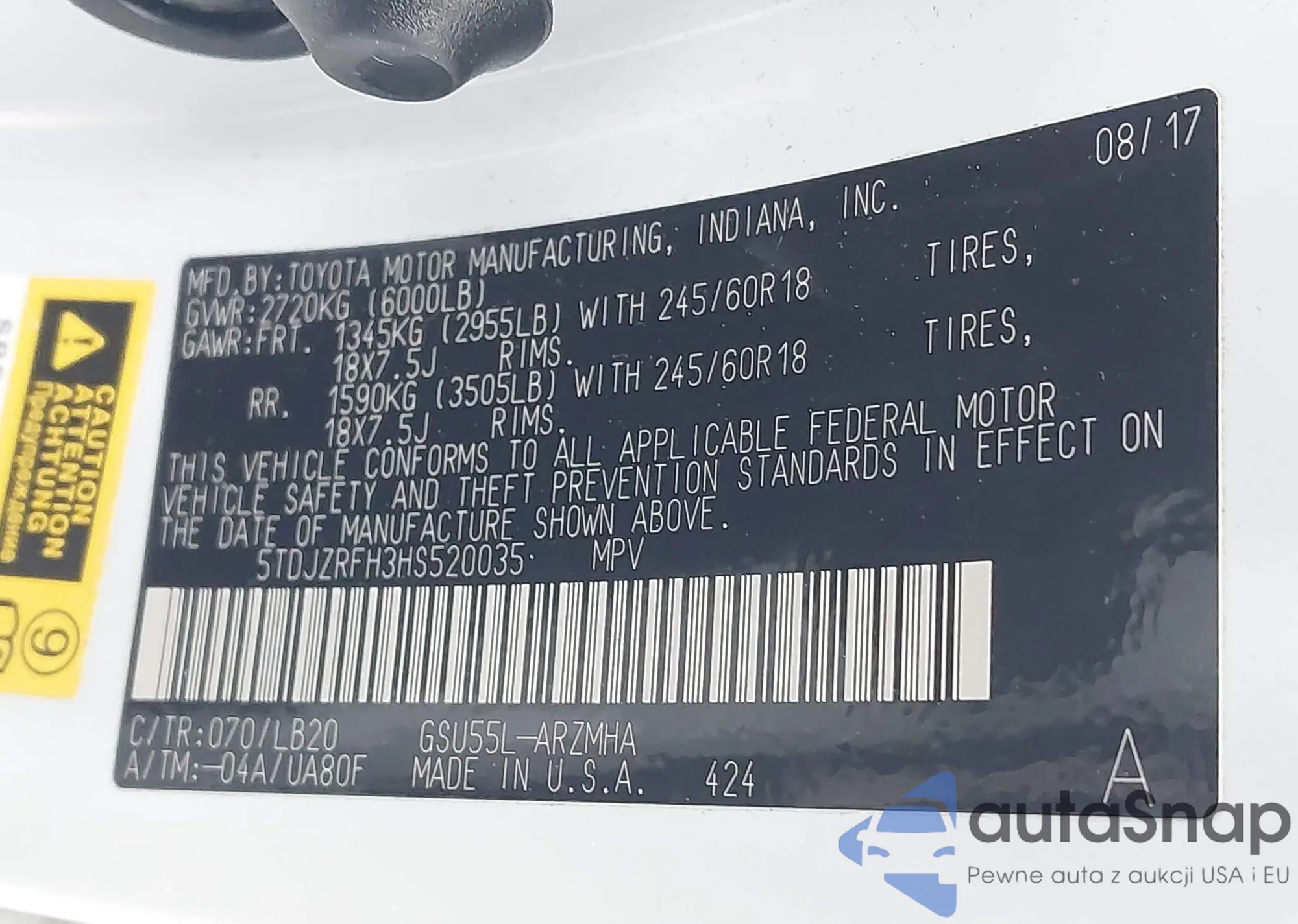 • VIN 5TDJZRFH3HS520035