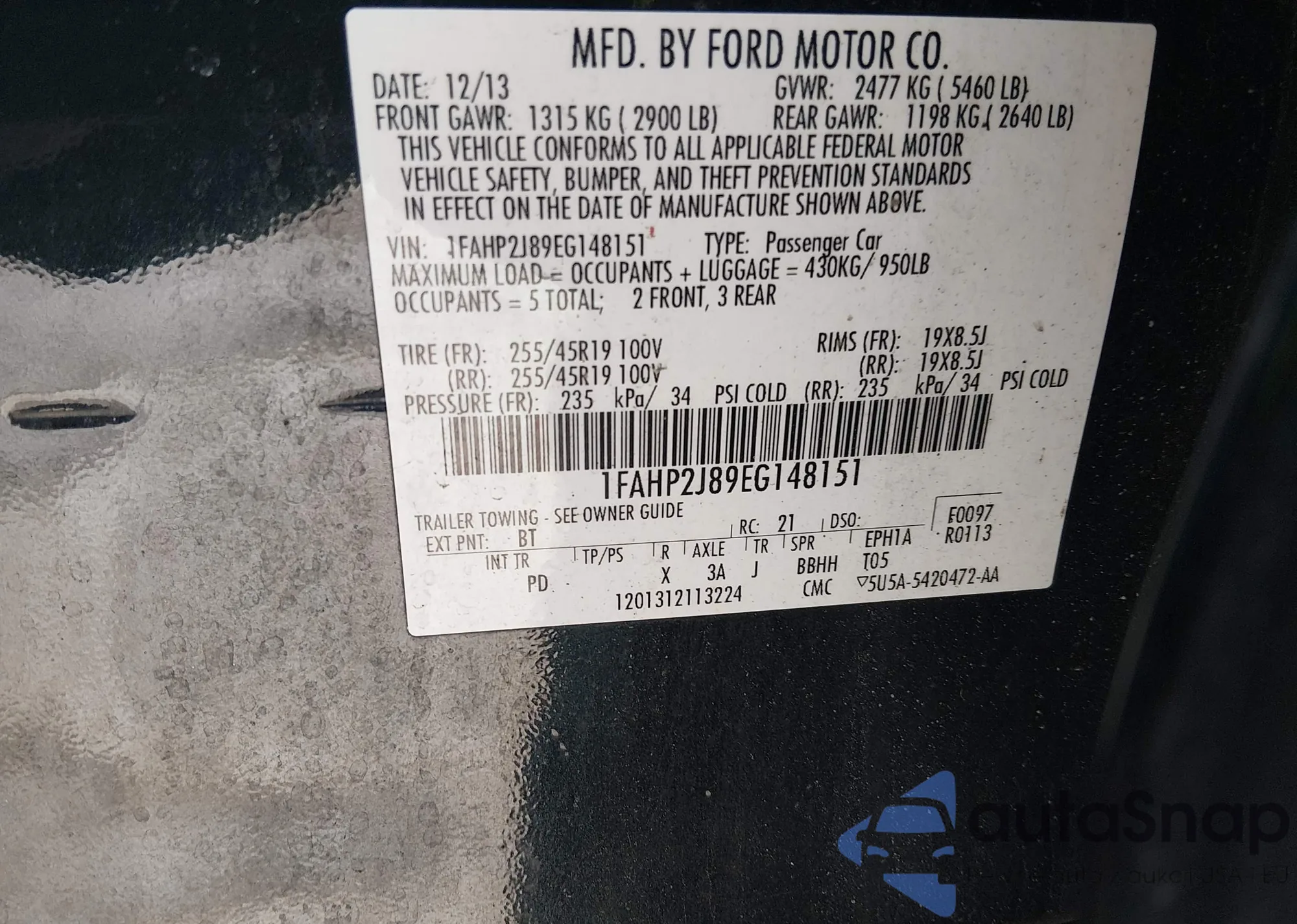 • VIN 1FAHP2J89EG148151