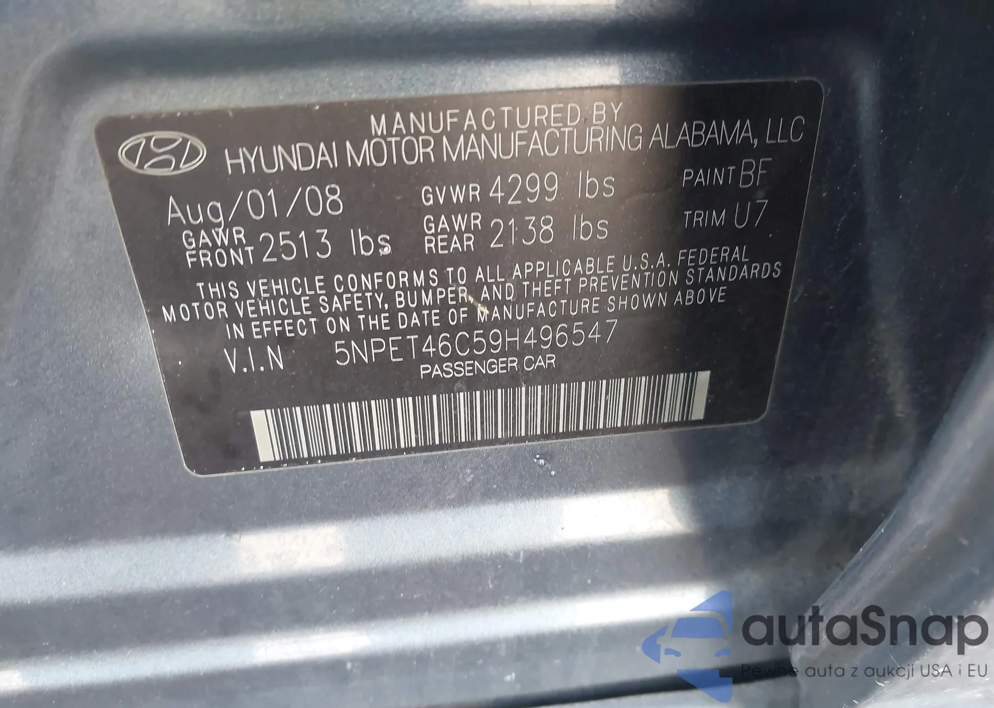 • VIN 5NPET46C59H496547