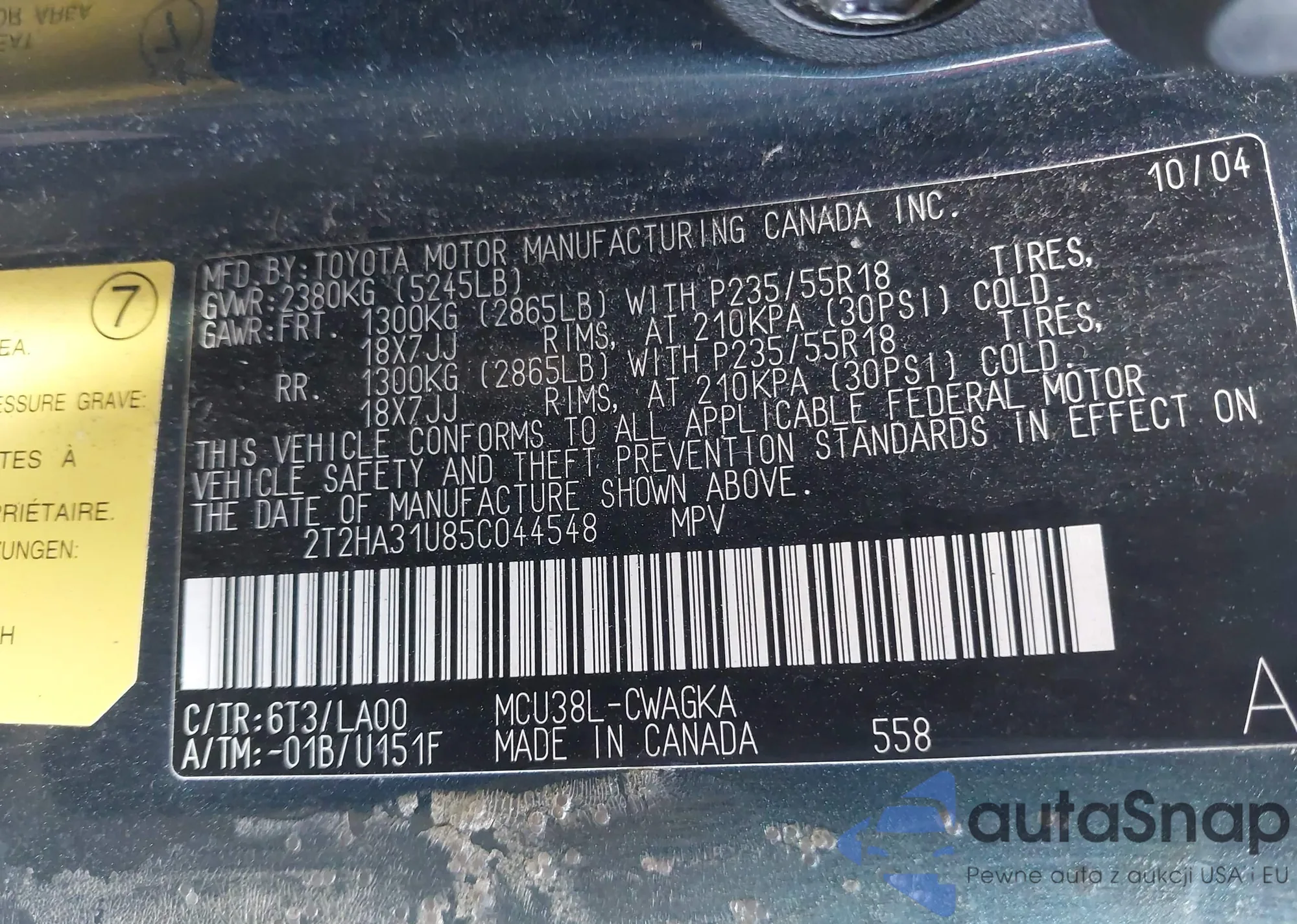 • VIN 2T2HA31U85C044548