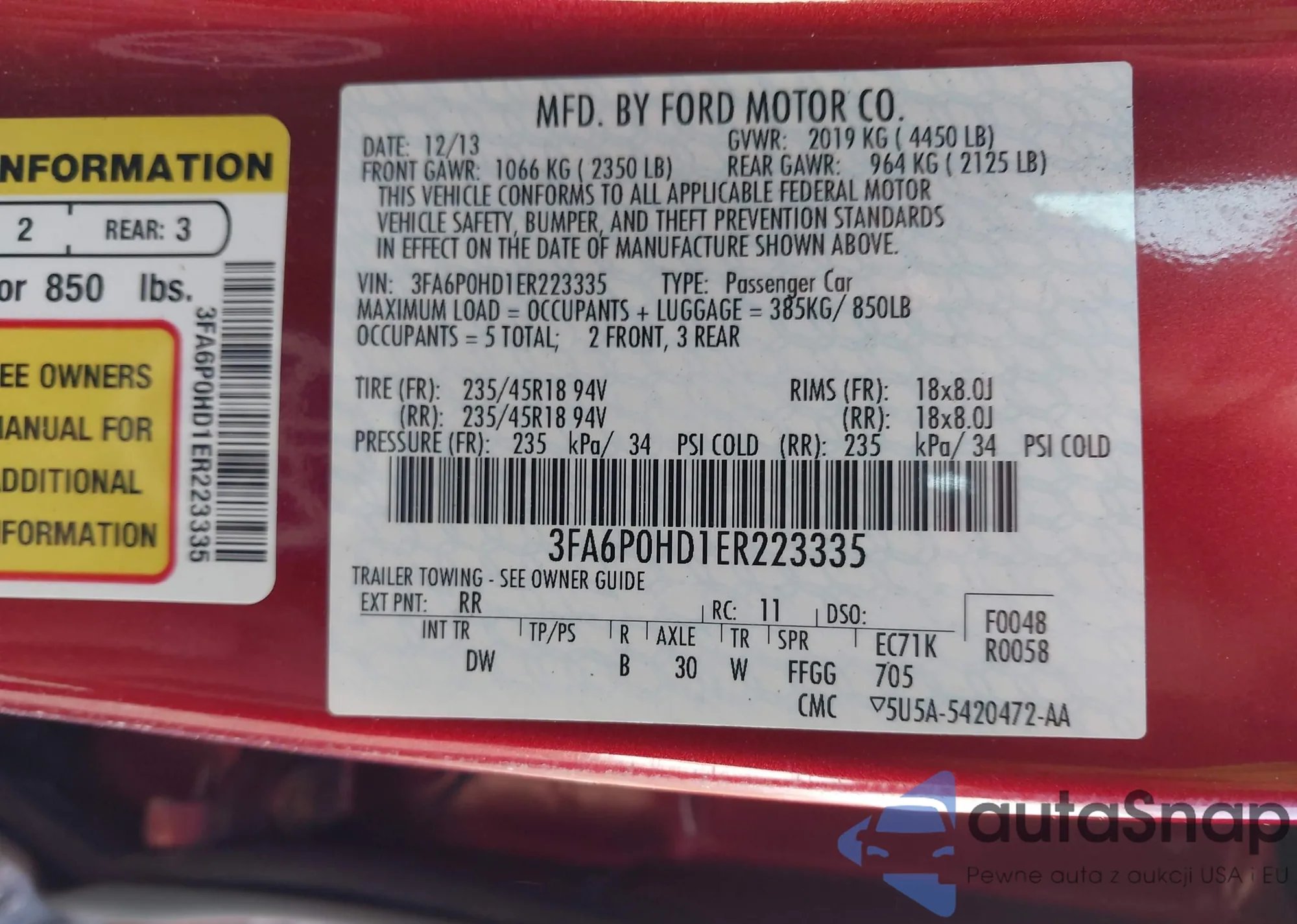 • VIN 3FA6P0HD1ER223335