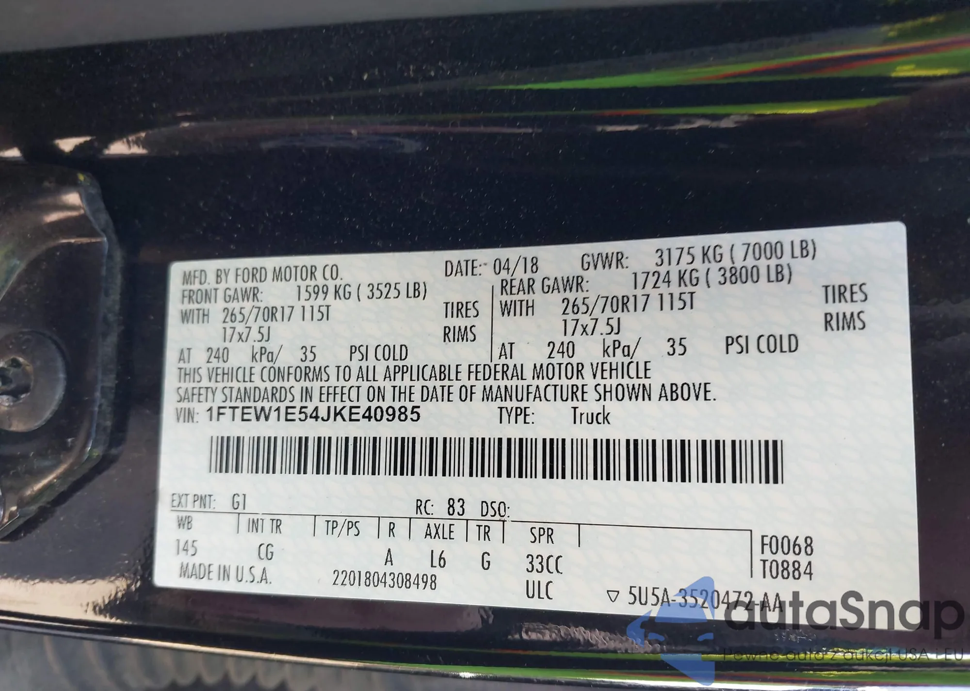 • VIN 5YJ3E1EA2MF918278