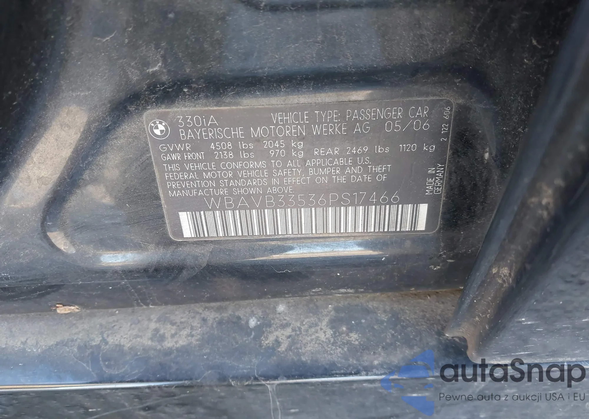 2006 BMW 330I из США, поврежденный, VIN WBAVB33536PS17466