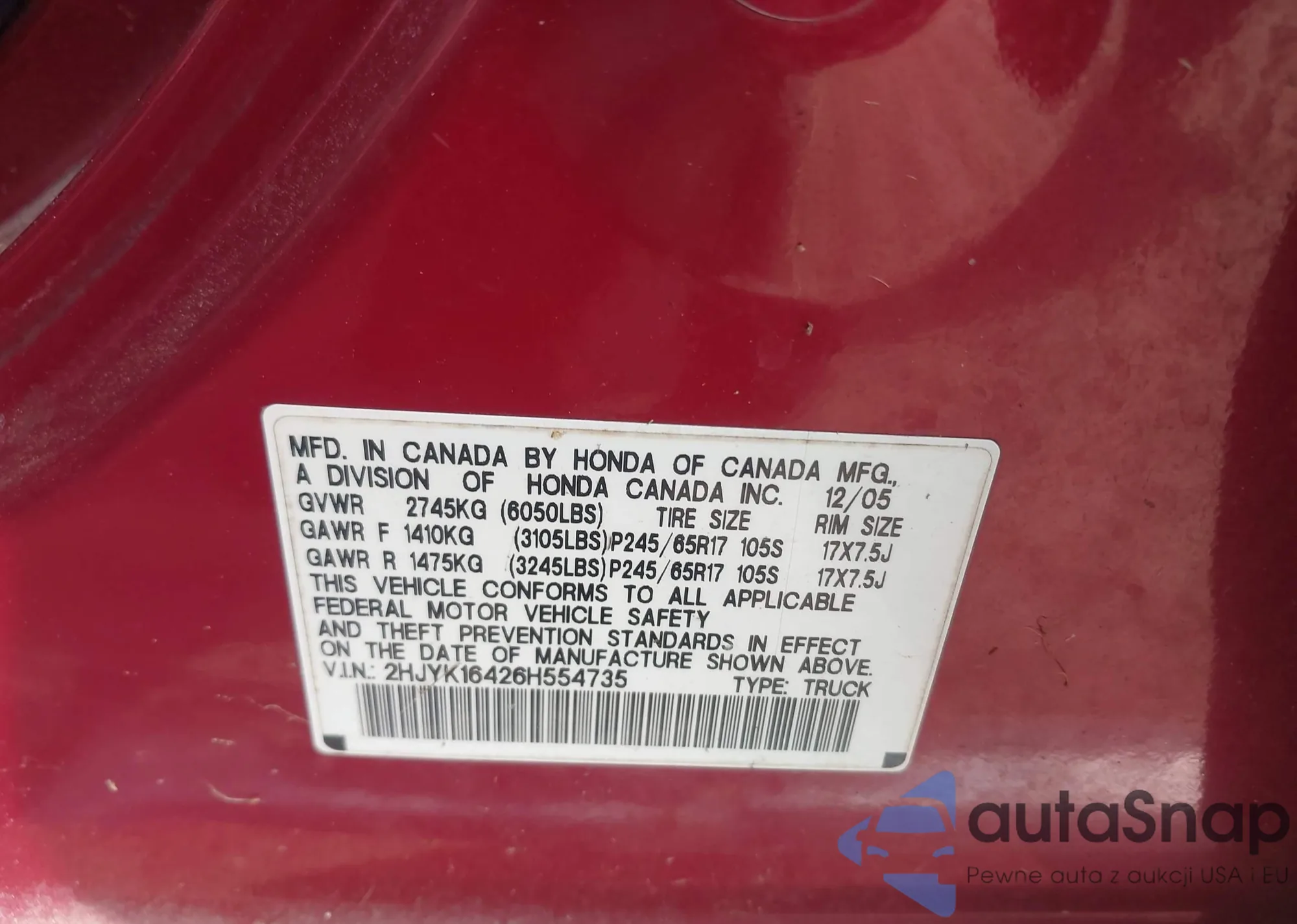 • VIN 2HJYK16426H554735