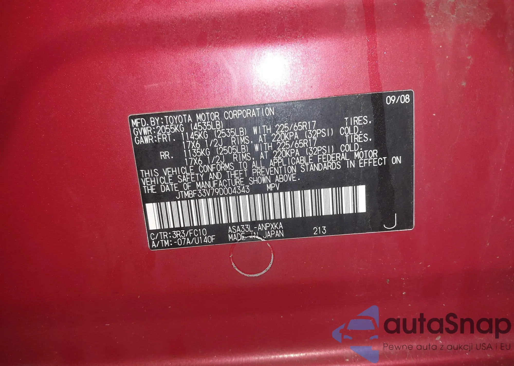 LOT: 44568504 VIN: 2T2HK31U18C059796