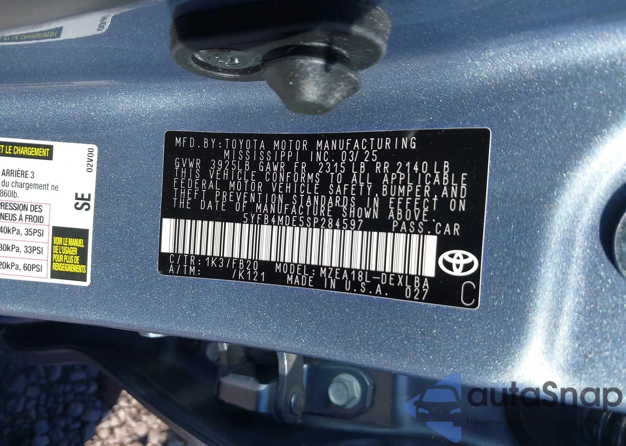 • VIN 2T1BU4EE3BC610072