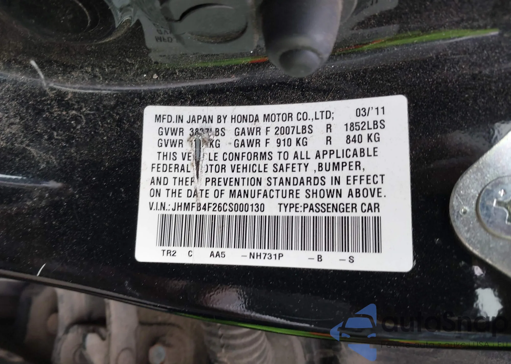 • VIN JHMFB4F26CS000130