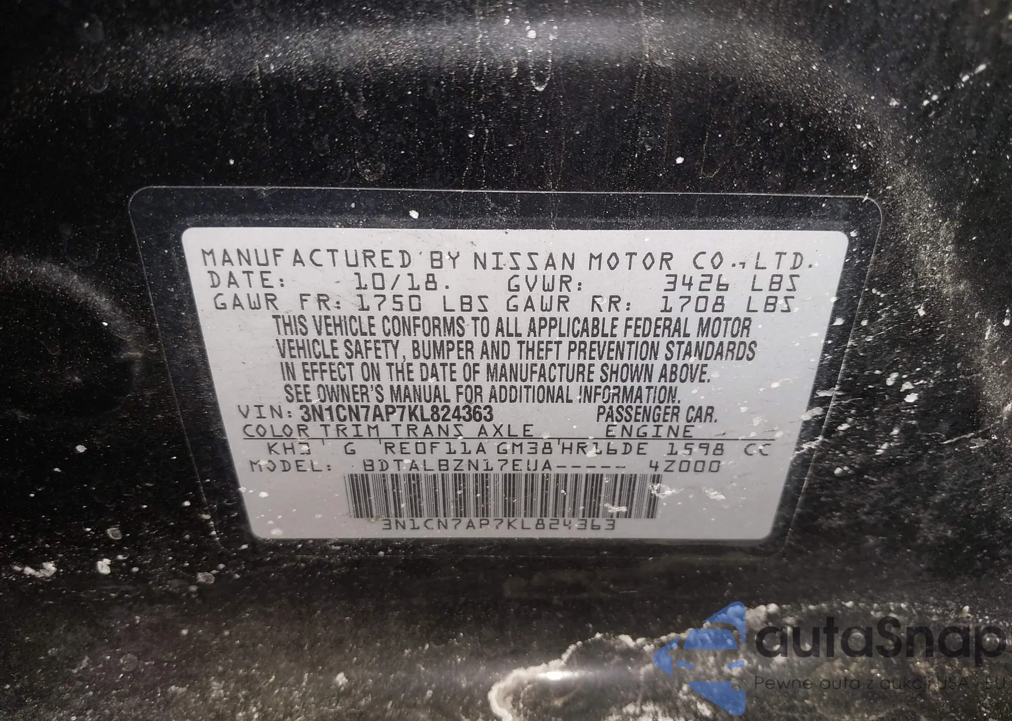 LOT: 44365920 VIN: 1N4BL4DV4RN327794