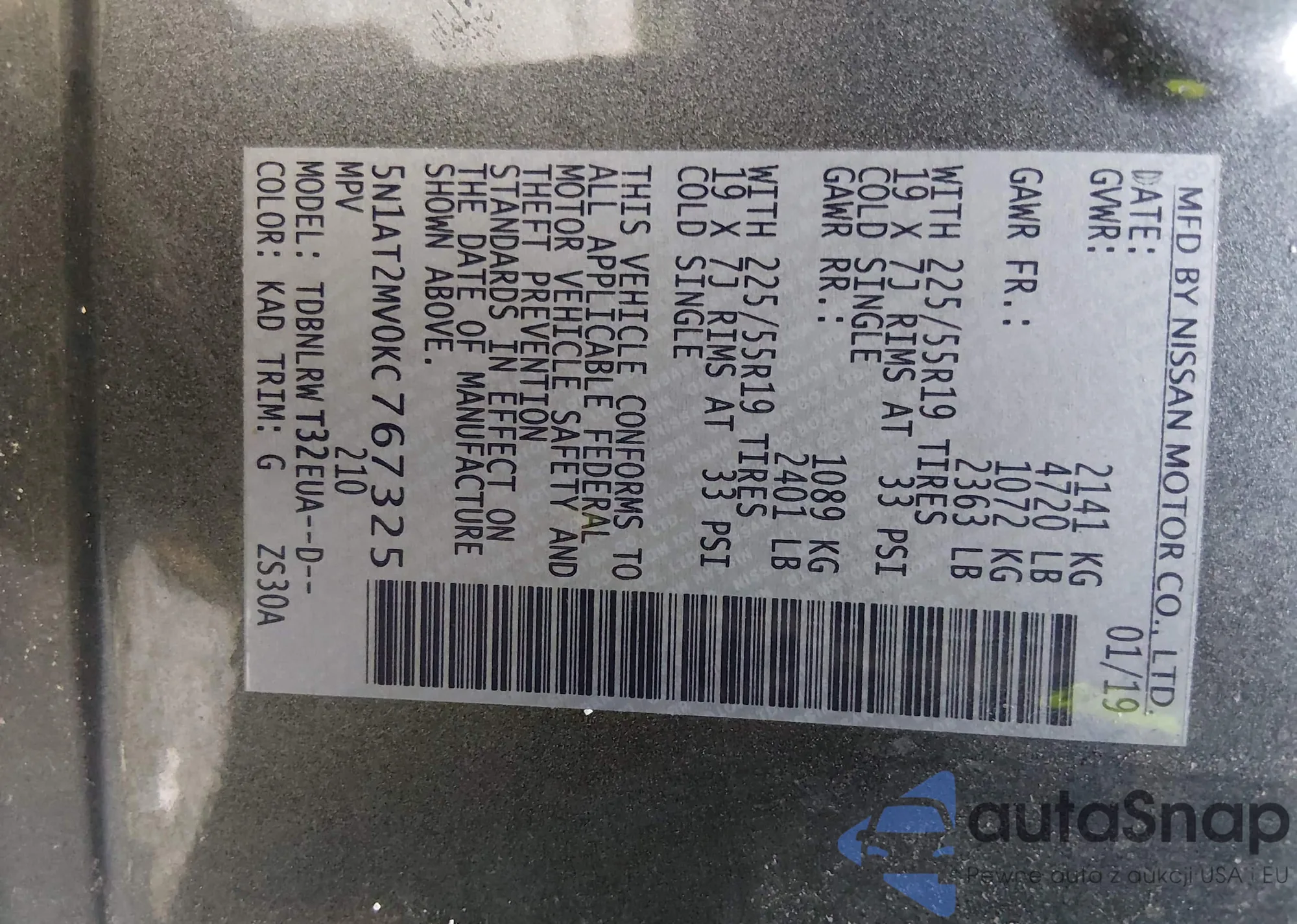 • VIN 5N1AT2MV0KC767325