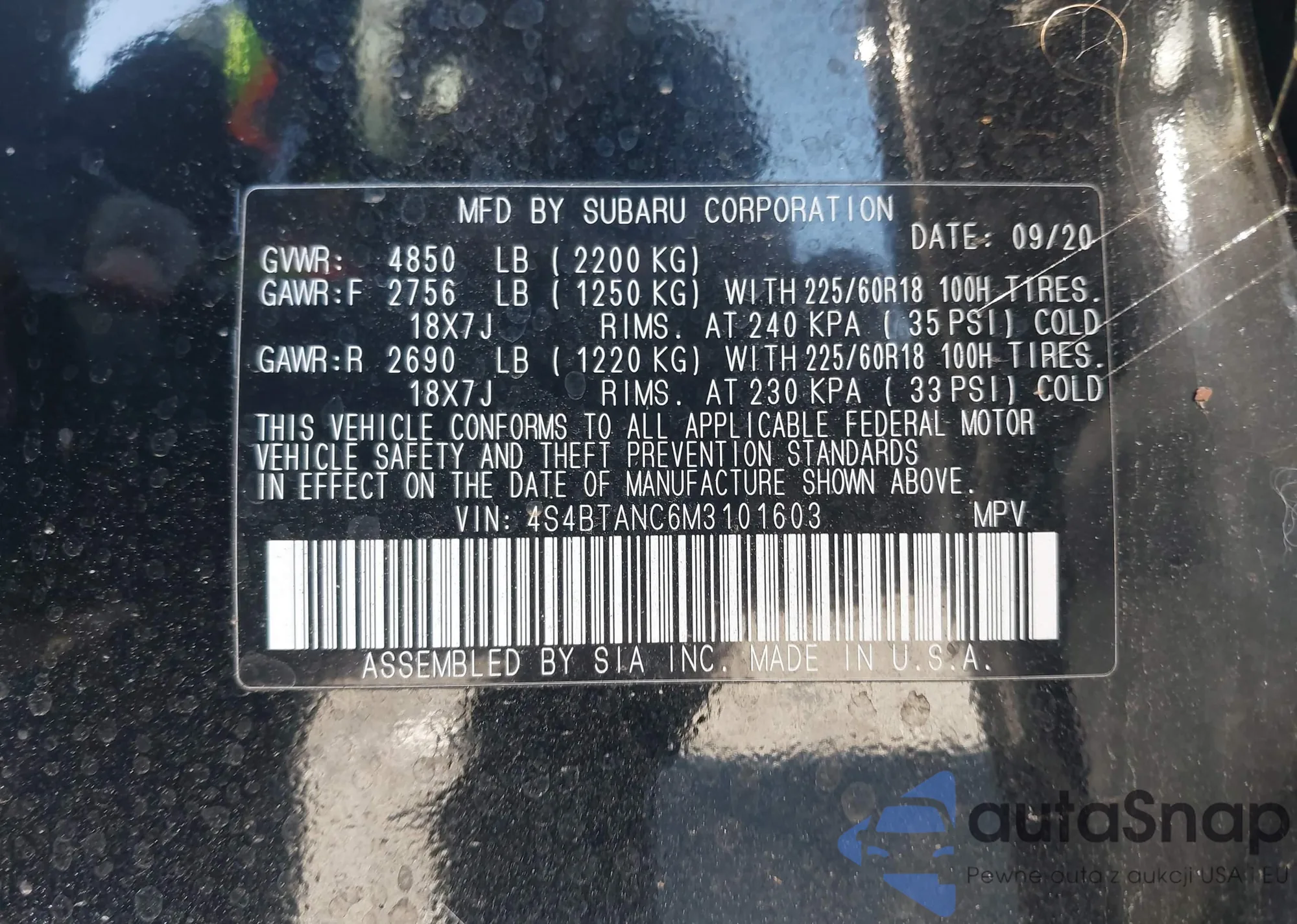 LOT: 43978074 VIN: 4S4BTANC6M3101603