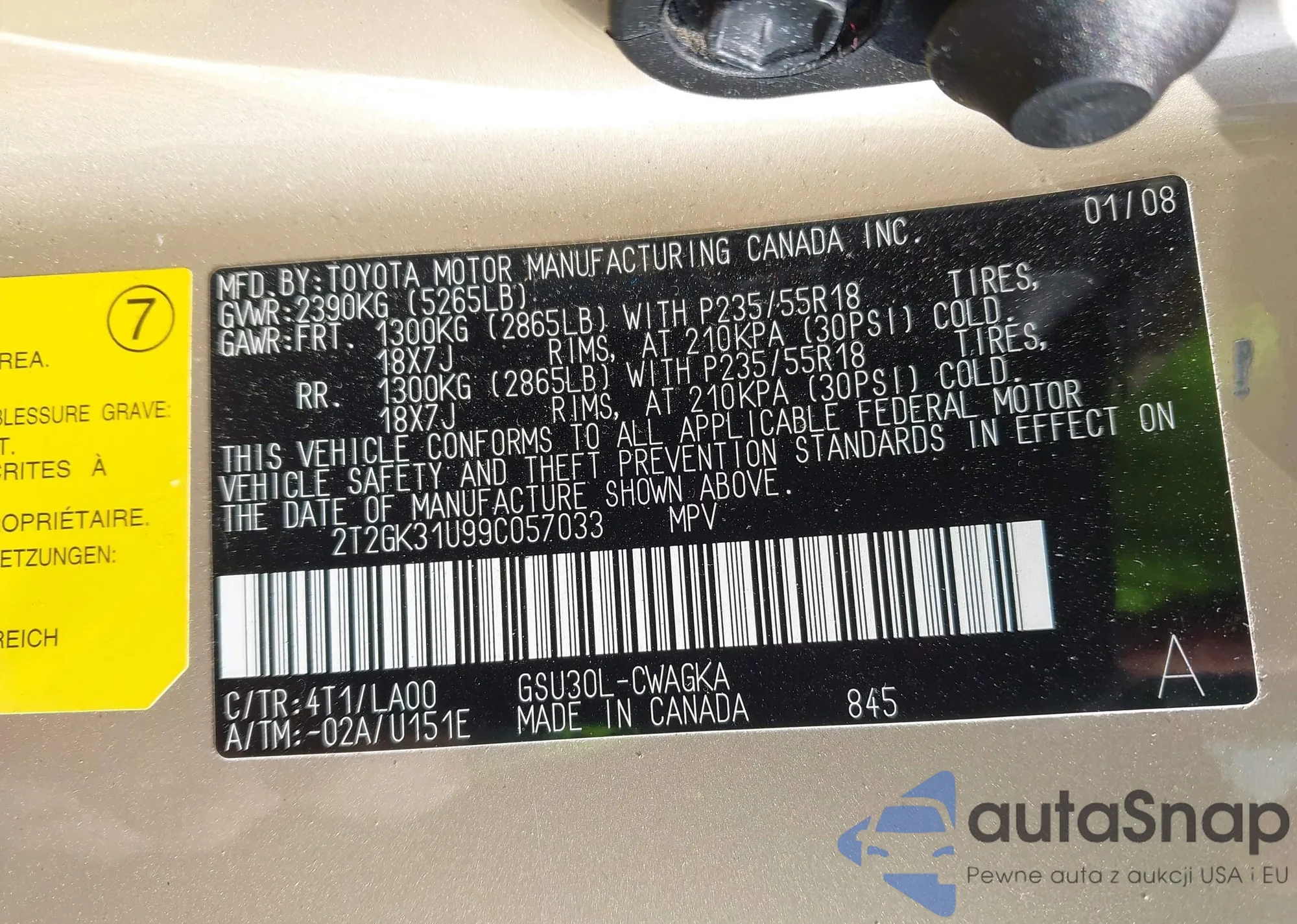 • VIN 2T2GK31U99C057033