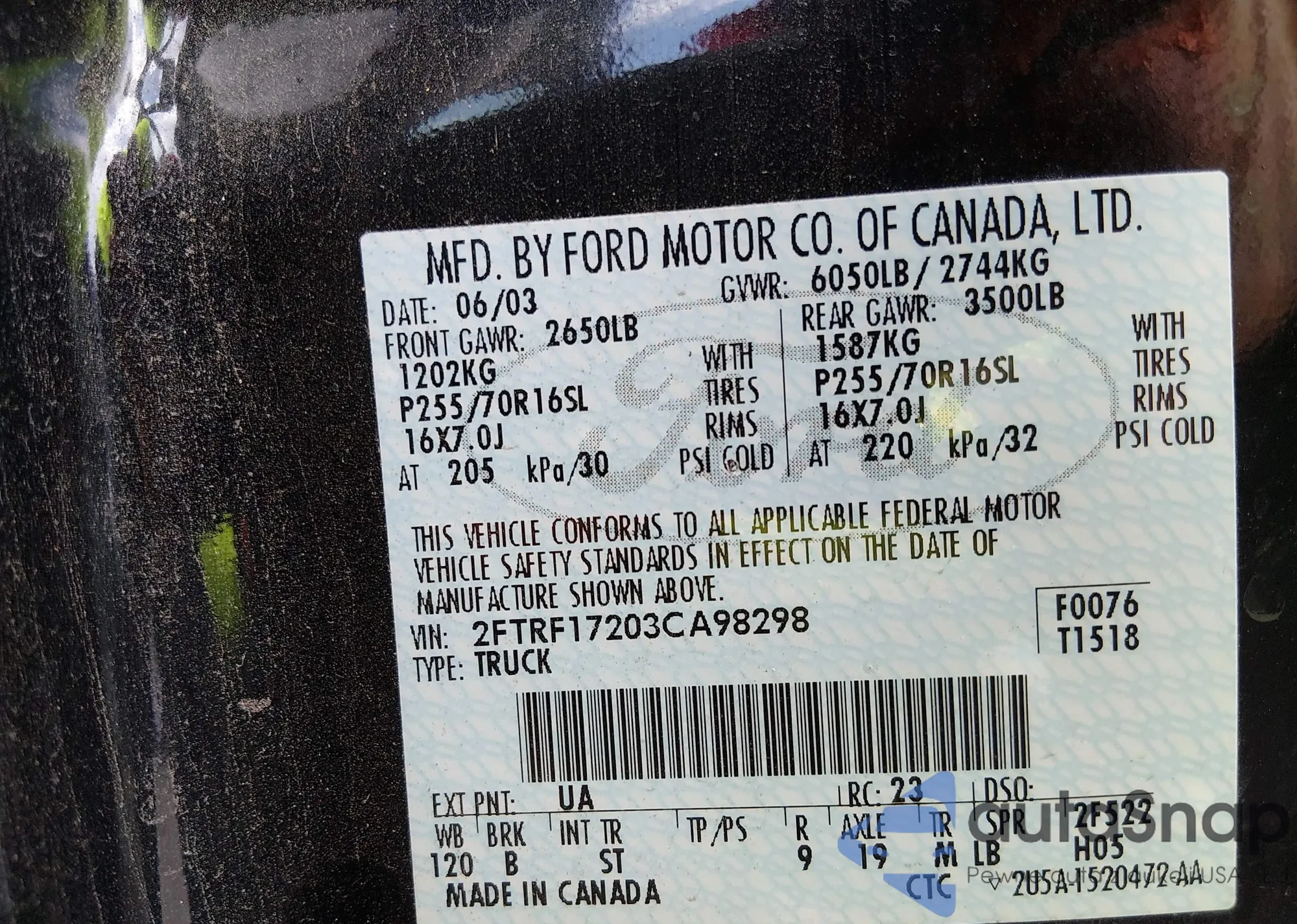• VIN 2FTRF17203CA98298