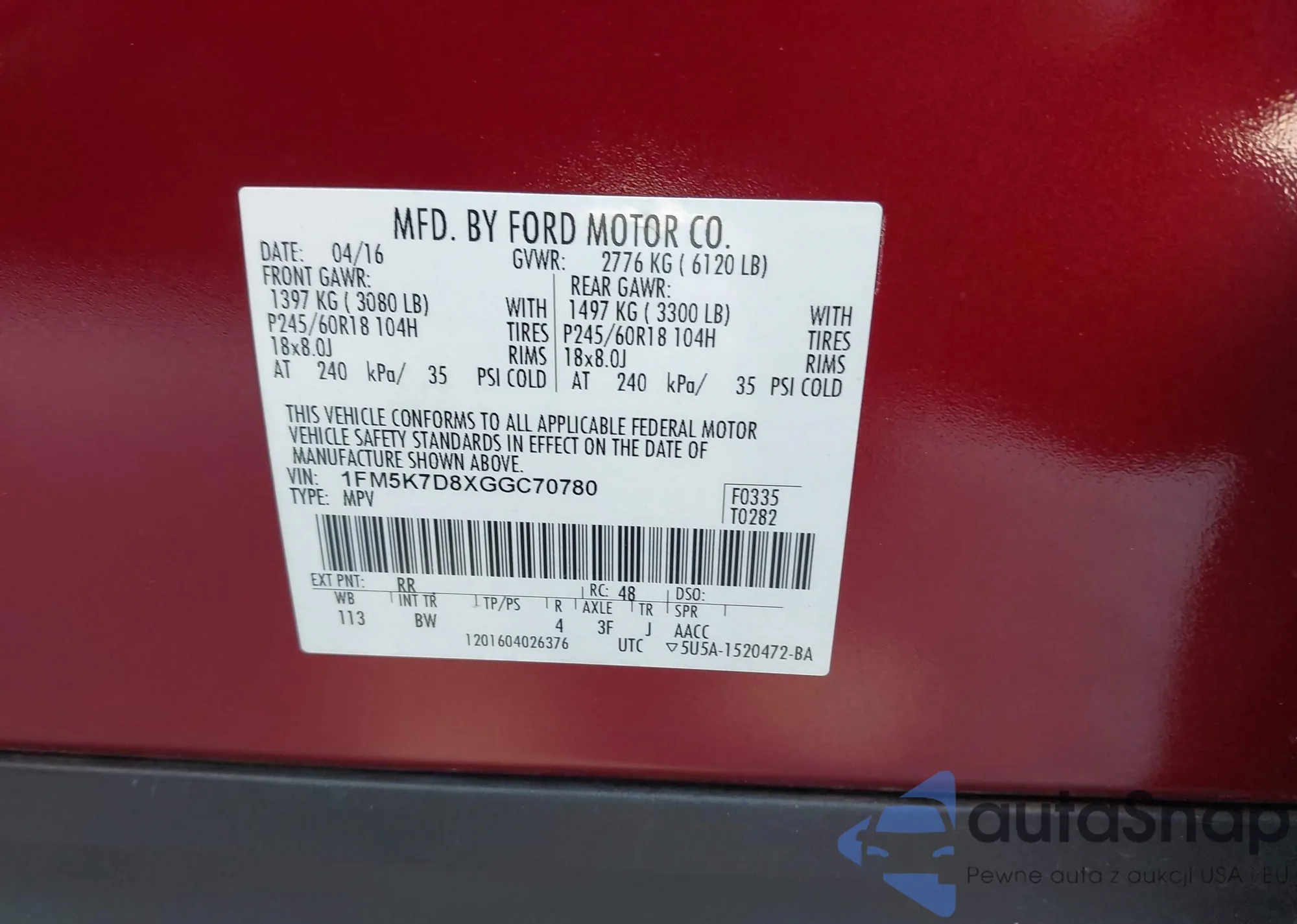 • VIN 1FM5K7D8XGGC70780