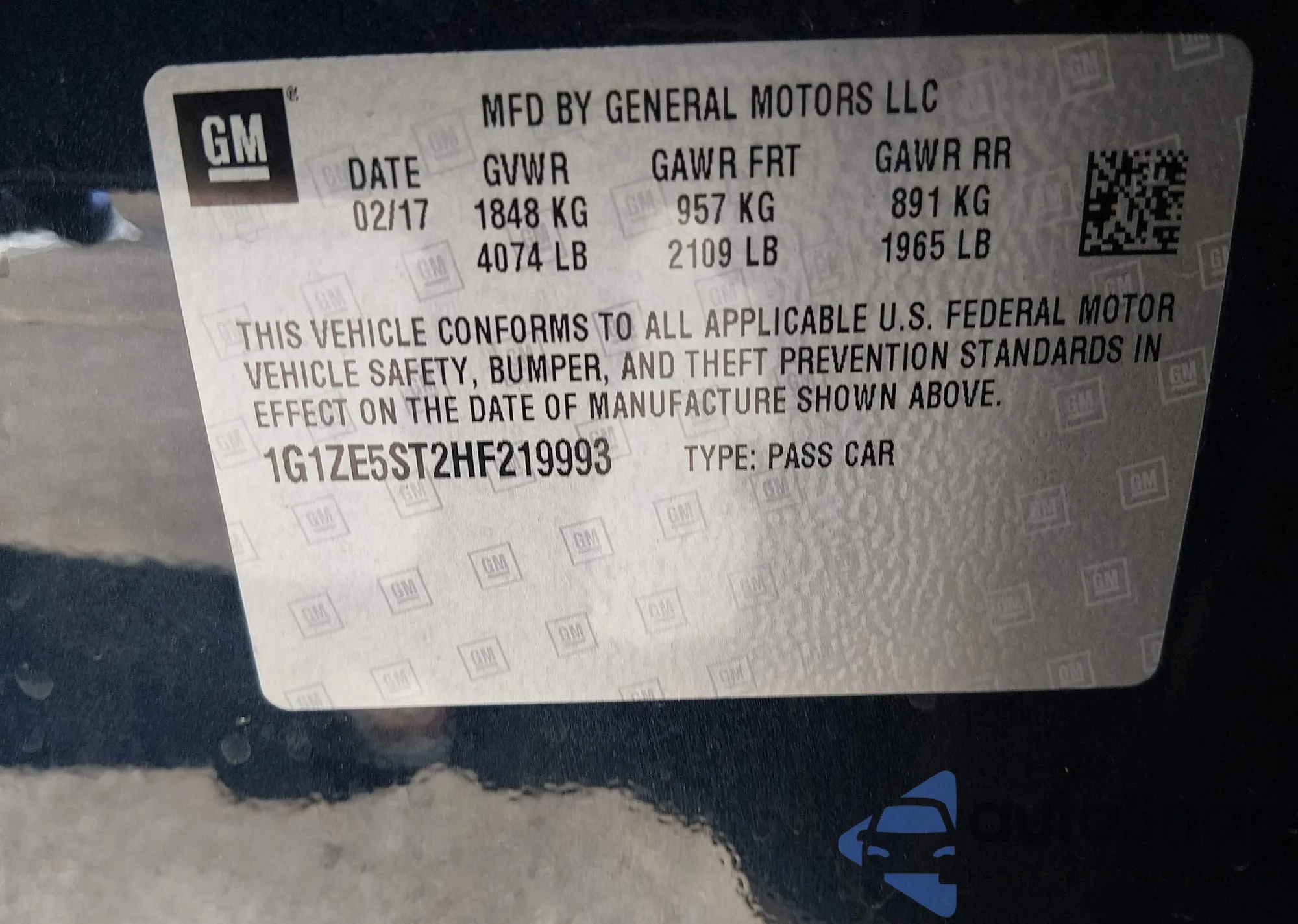 • VIN 1G1ZE5ST2HF219993