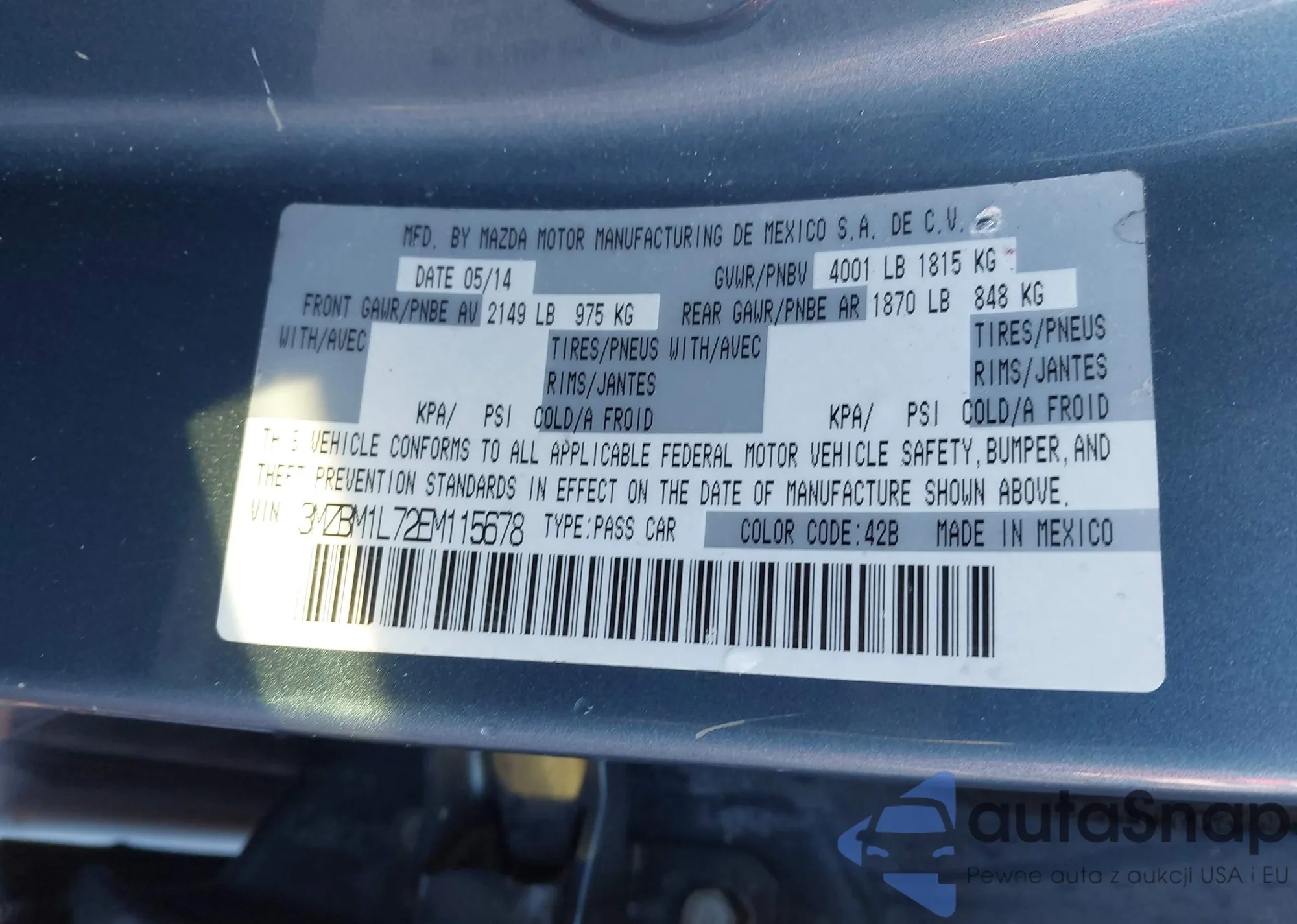 • VIN 3MZBM1L72EM115678