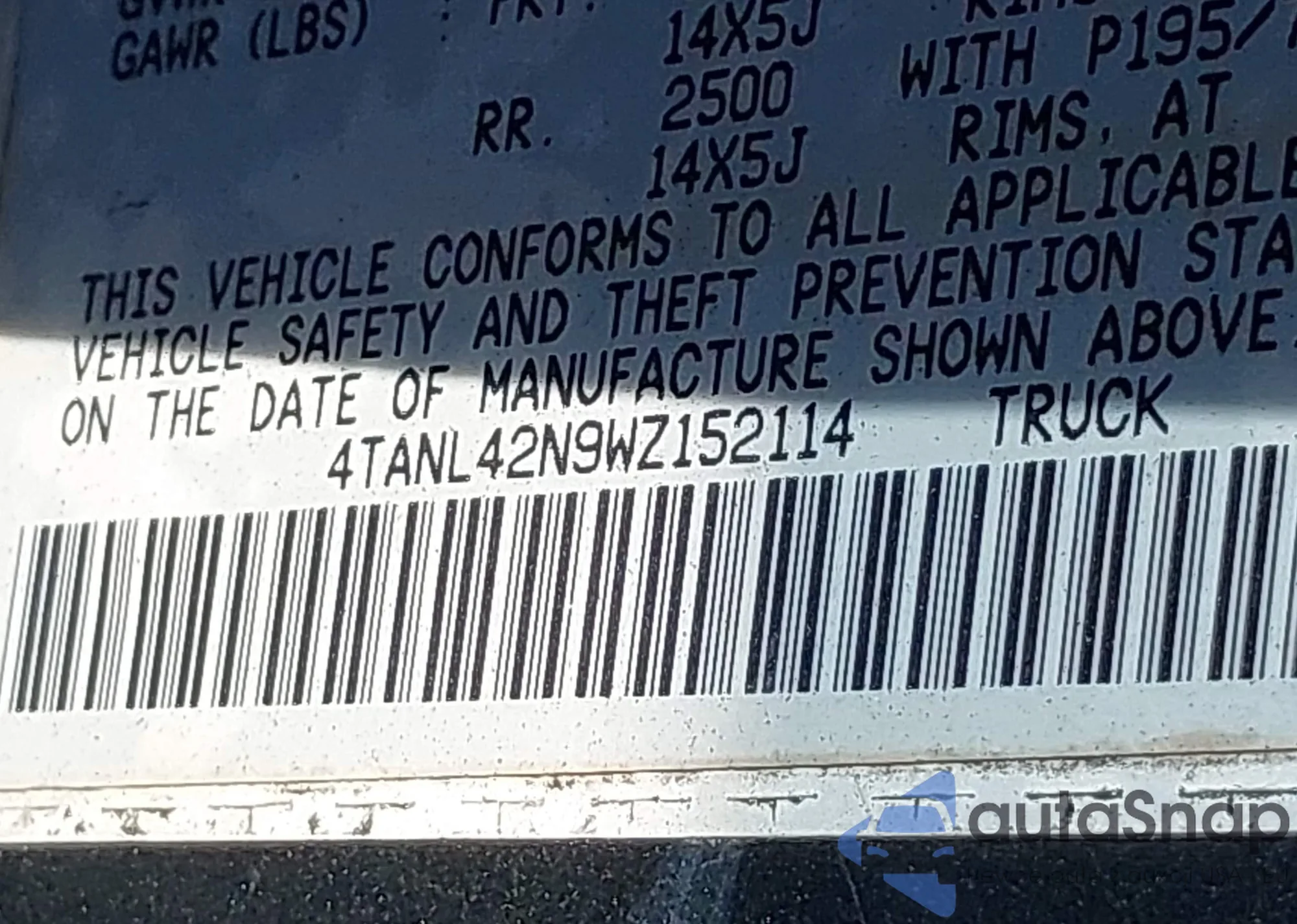 • VIN 4TANL42N9WZ152114