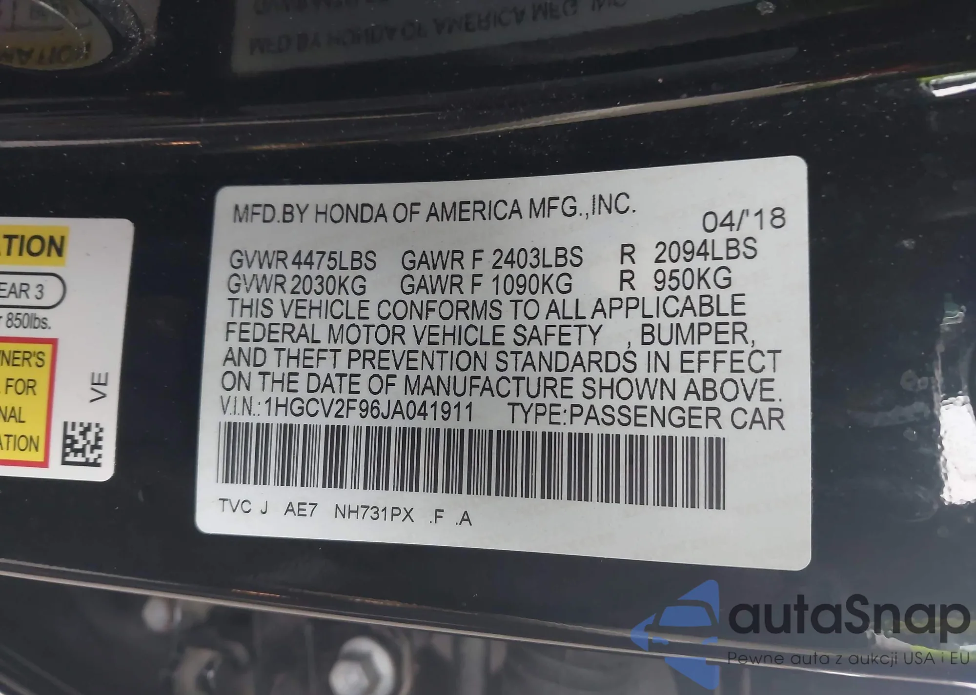 • VIN 2HGFB2F5XDH509700