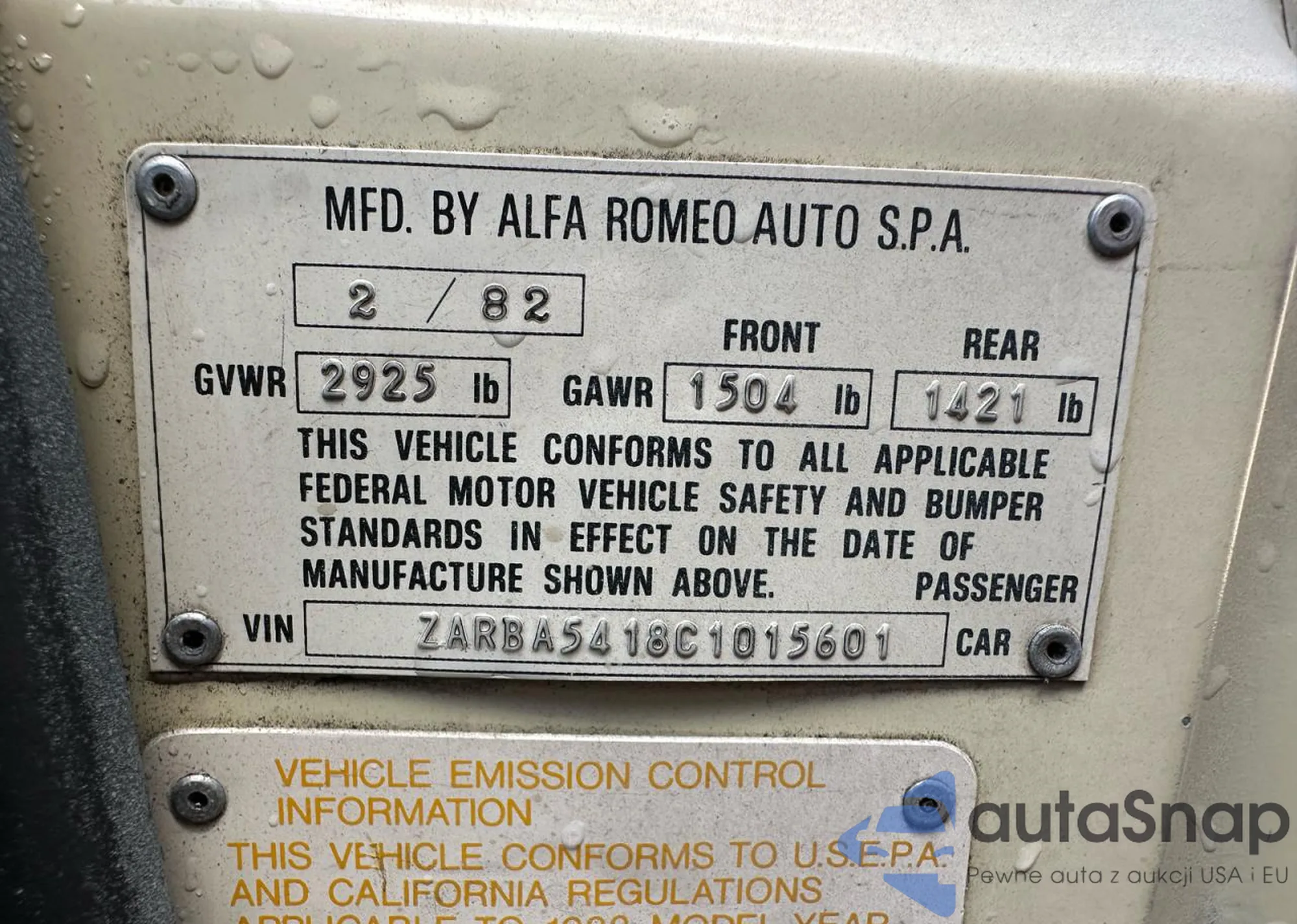 VIN: ZARBA5418C1015601