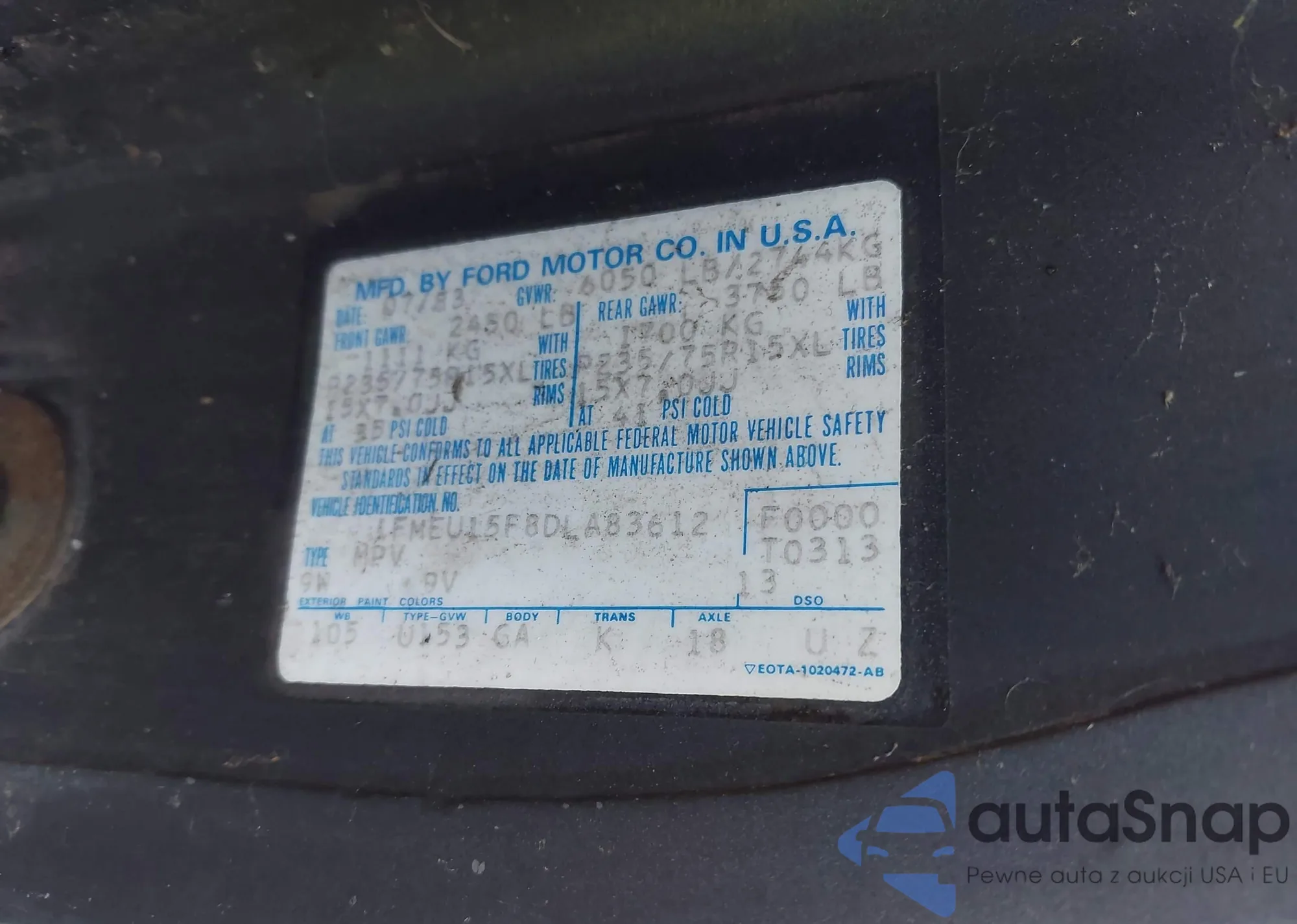 VIN: 1FMEU15F8DLA83612