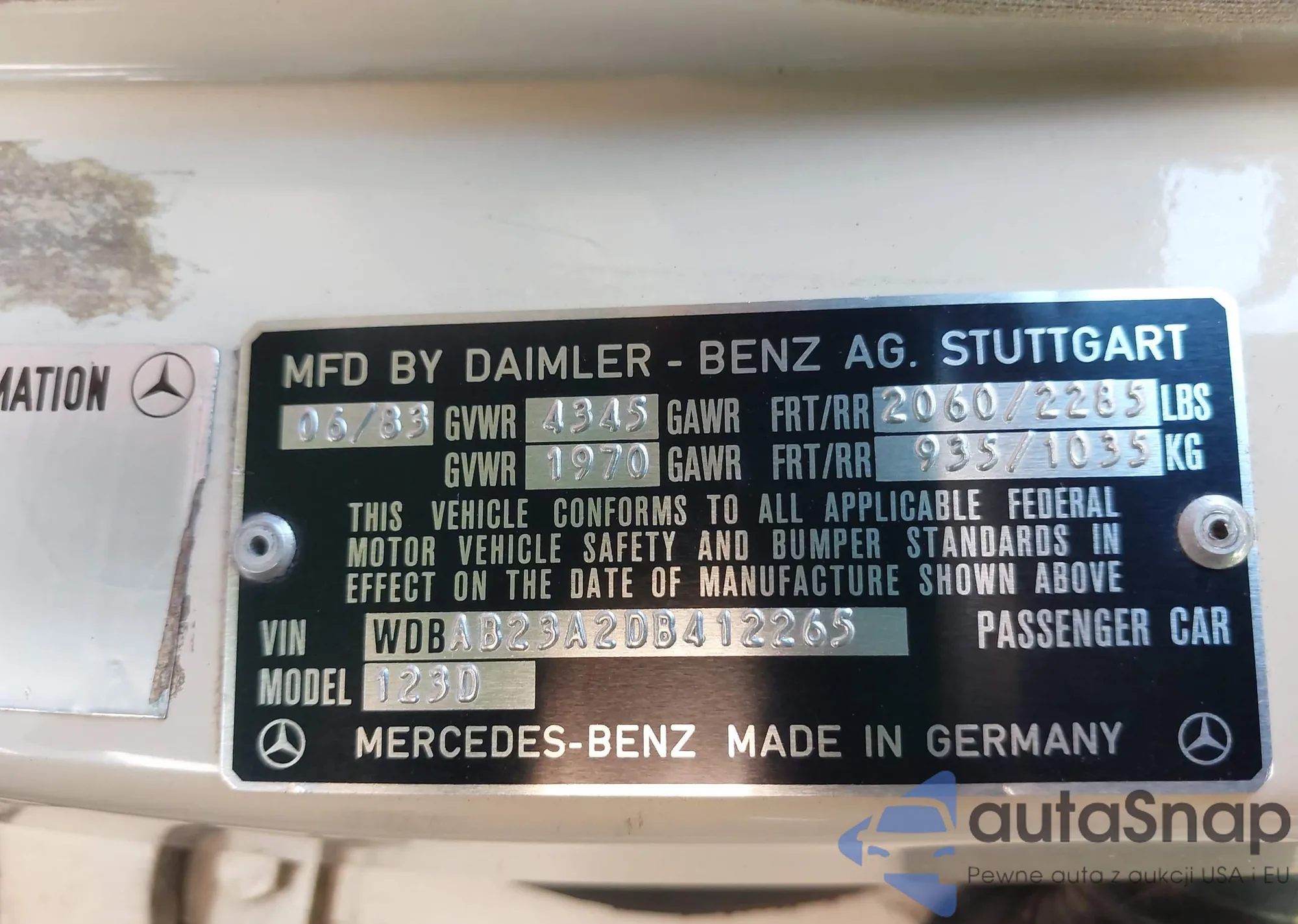 VIN: WDBAB23A2DB412265