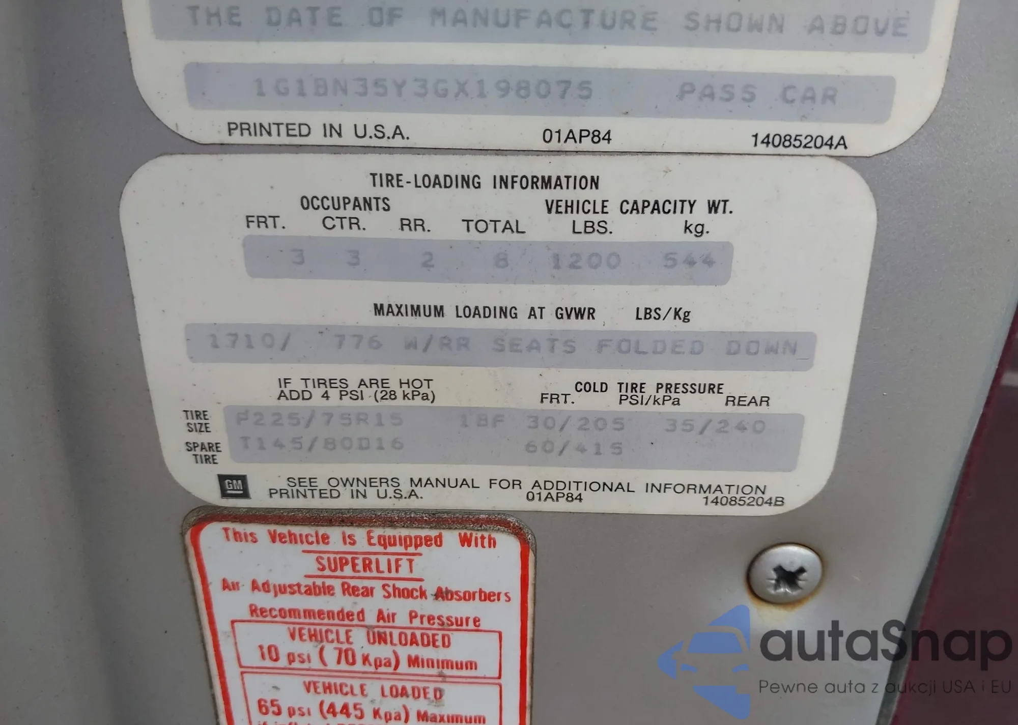 VIN: 1G1BN35Y3GX198075