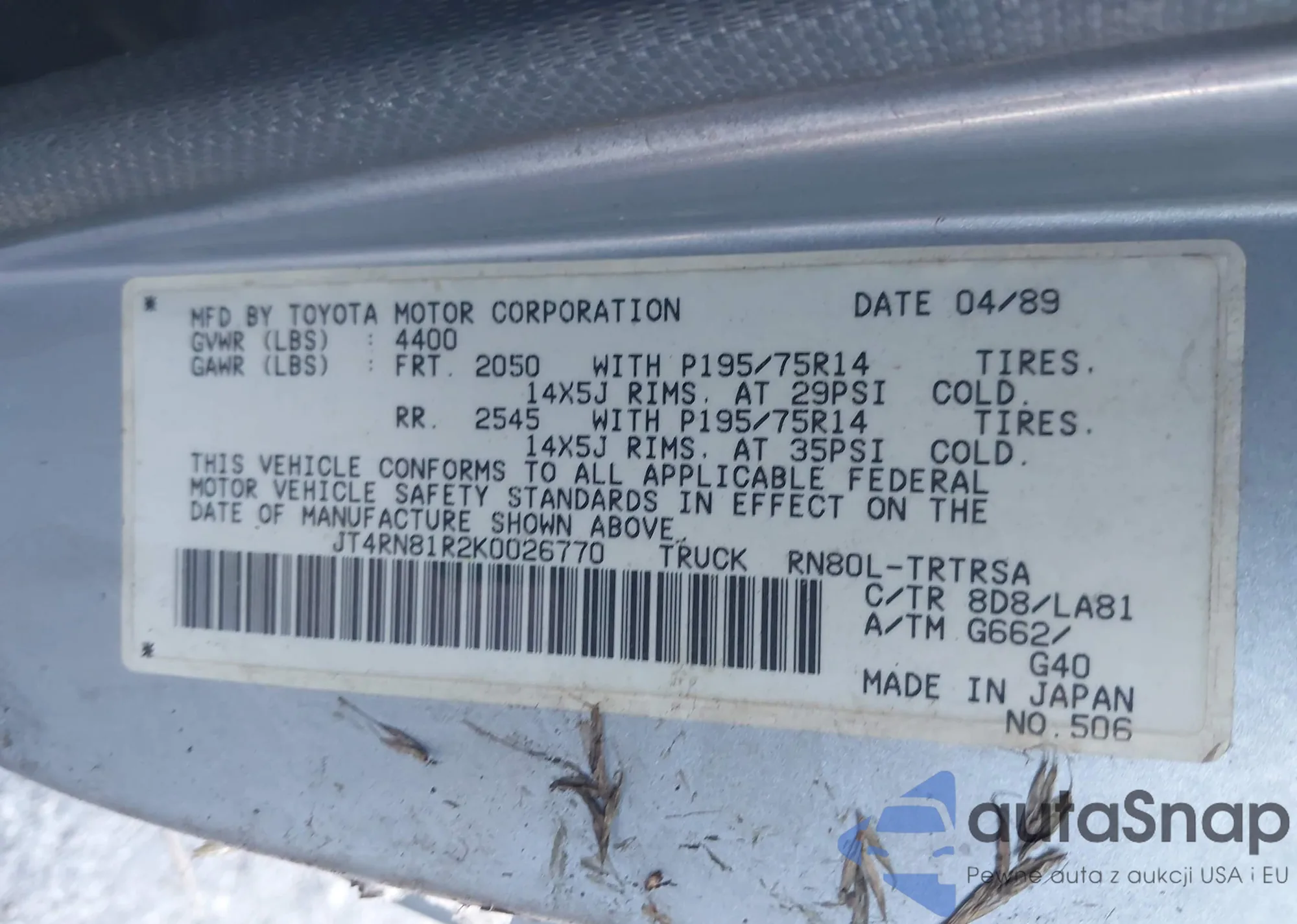 VIN: JT4RN81R2K0026770