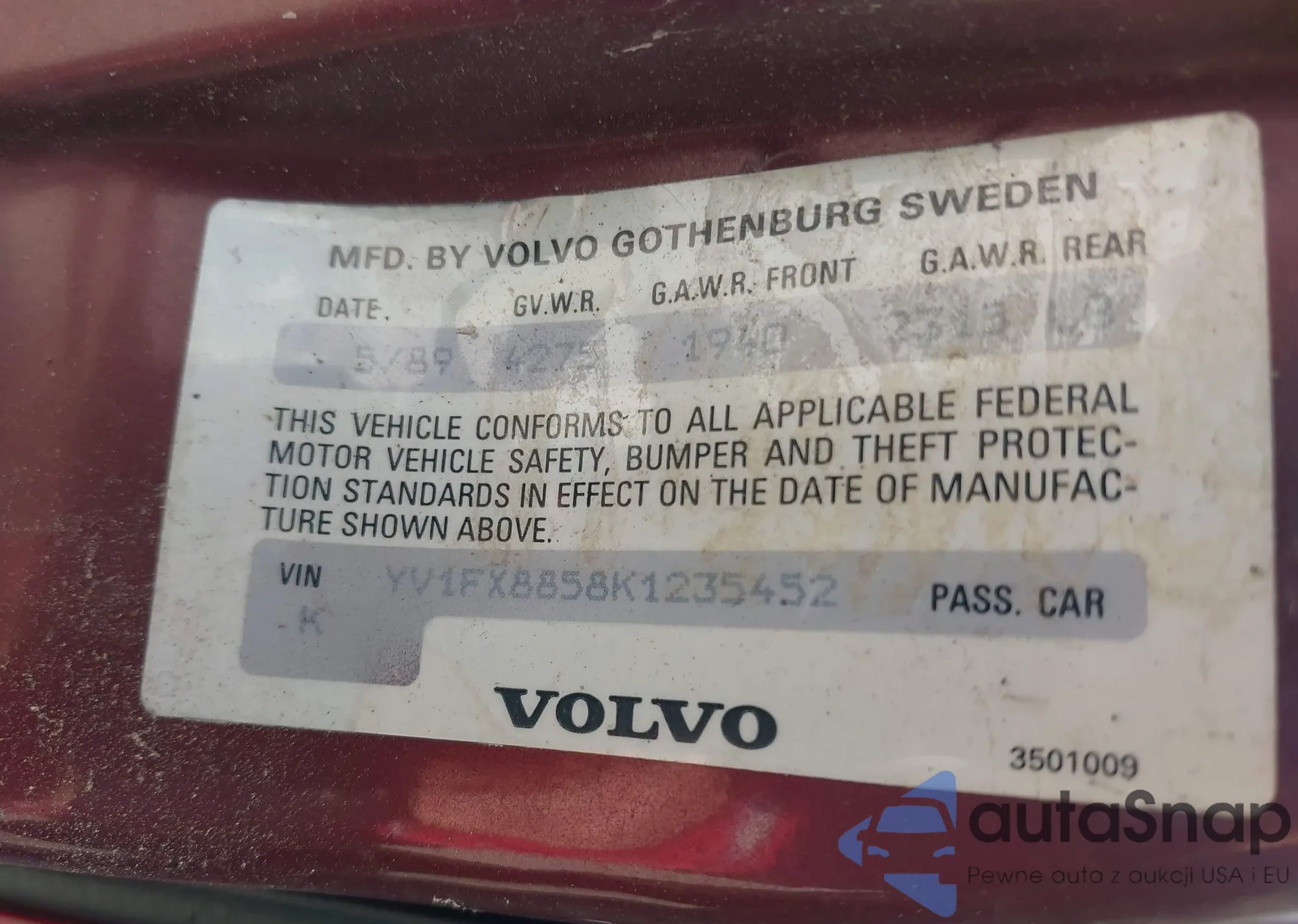 VIN: YV1FX8858K1235452