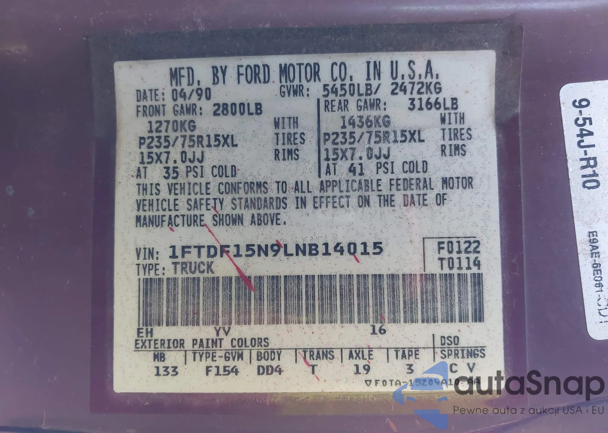 VIN: 1FTDF15N9LNB14015