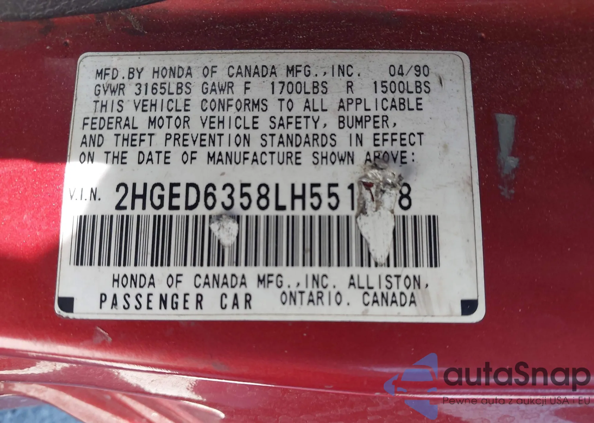 • VIN: 2HGED6358LH551668