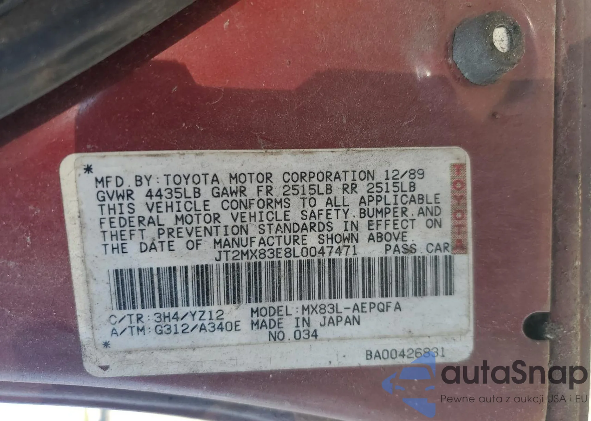 VIN: JT2MX83E8L0047471