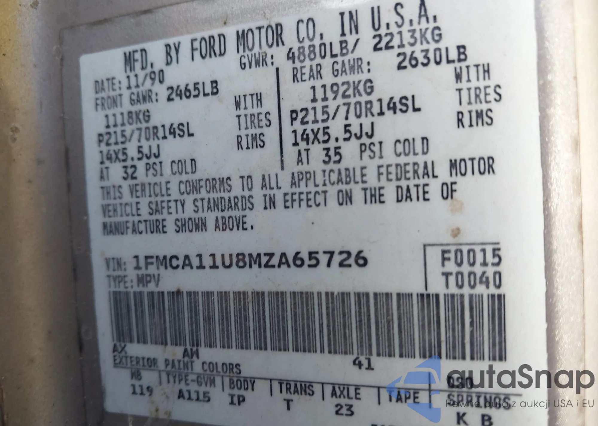 VIN: 1FMCA11U8MZA65726