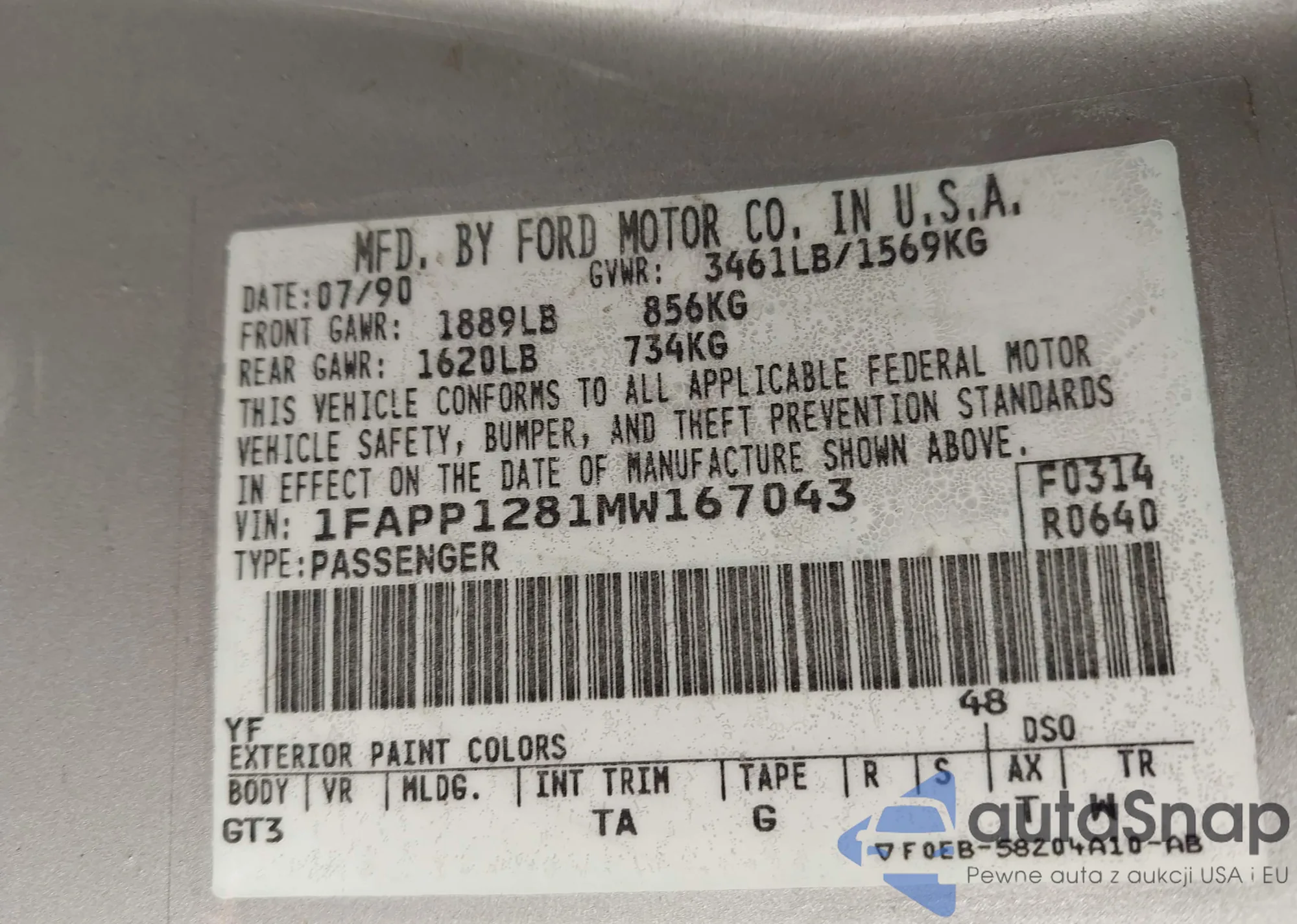 VIN: 1FAPP1281MW167043
