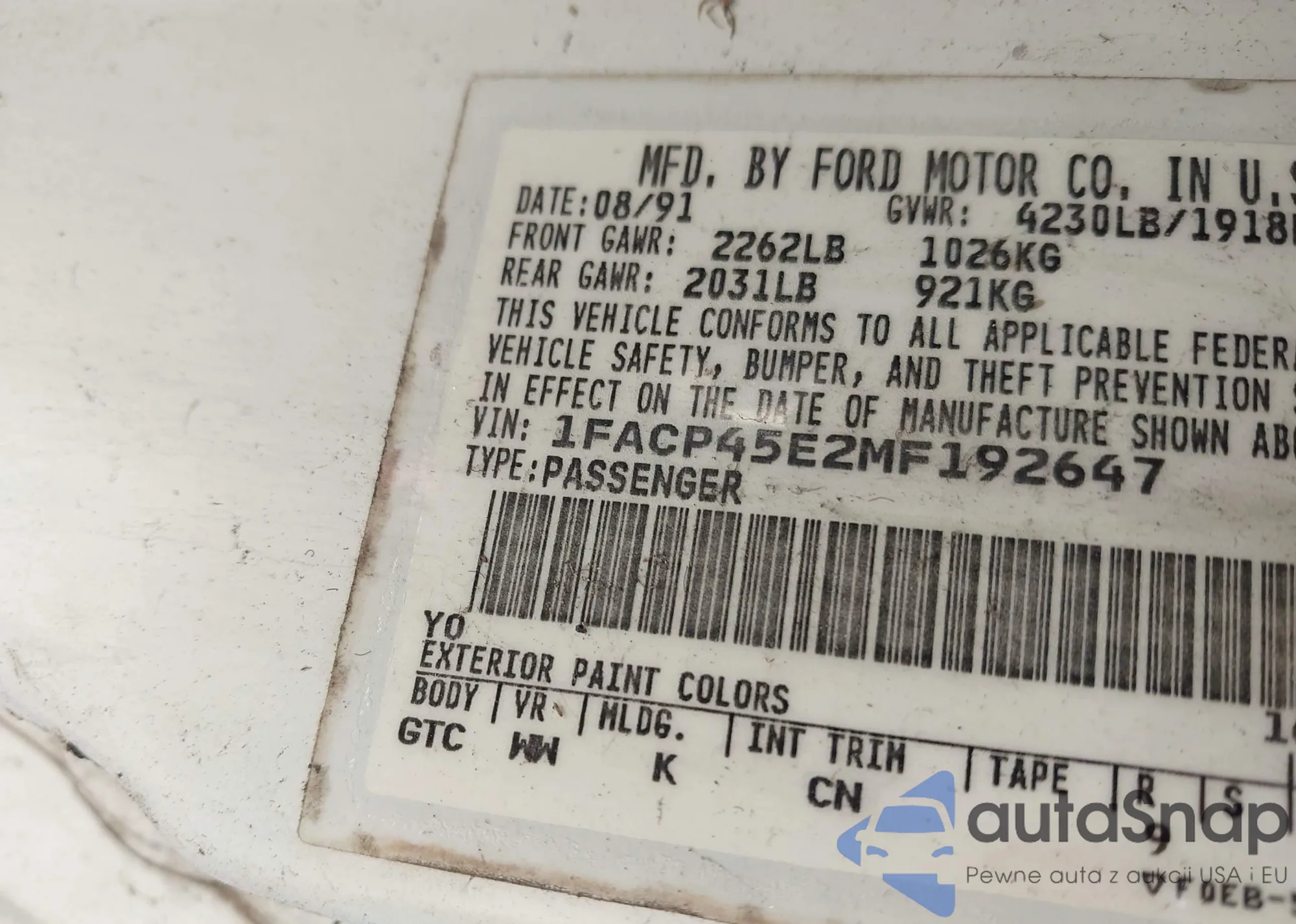 • VIN: 1FACP45E2MF192647