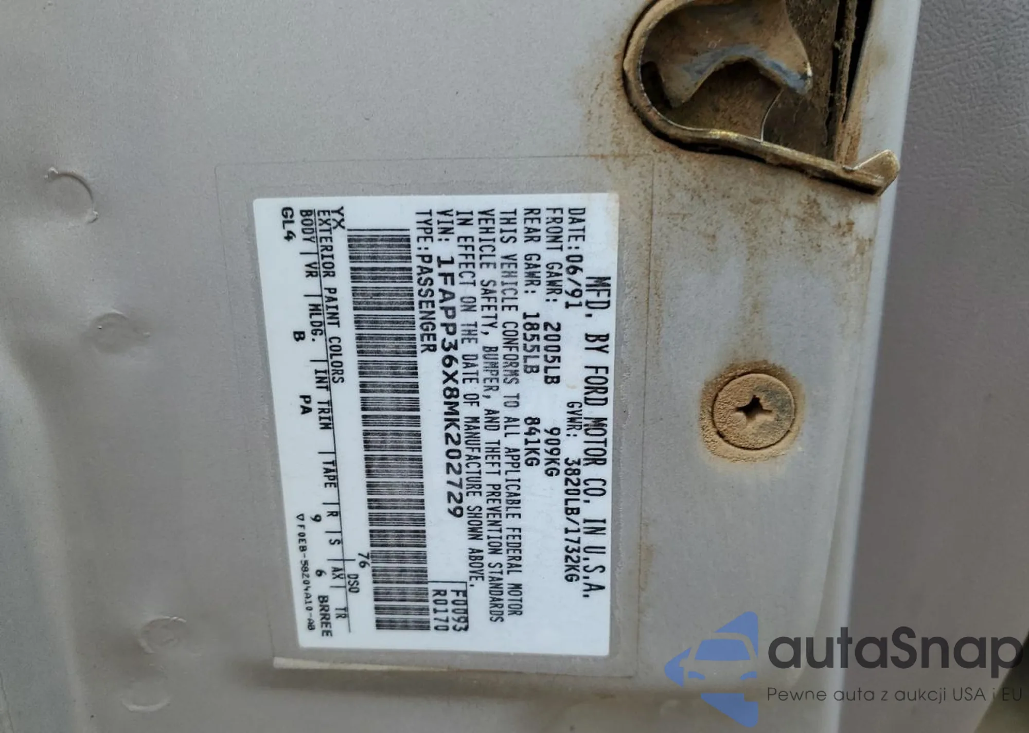 VIN: 1FAPP36X8MK202729