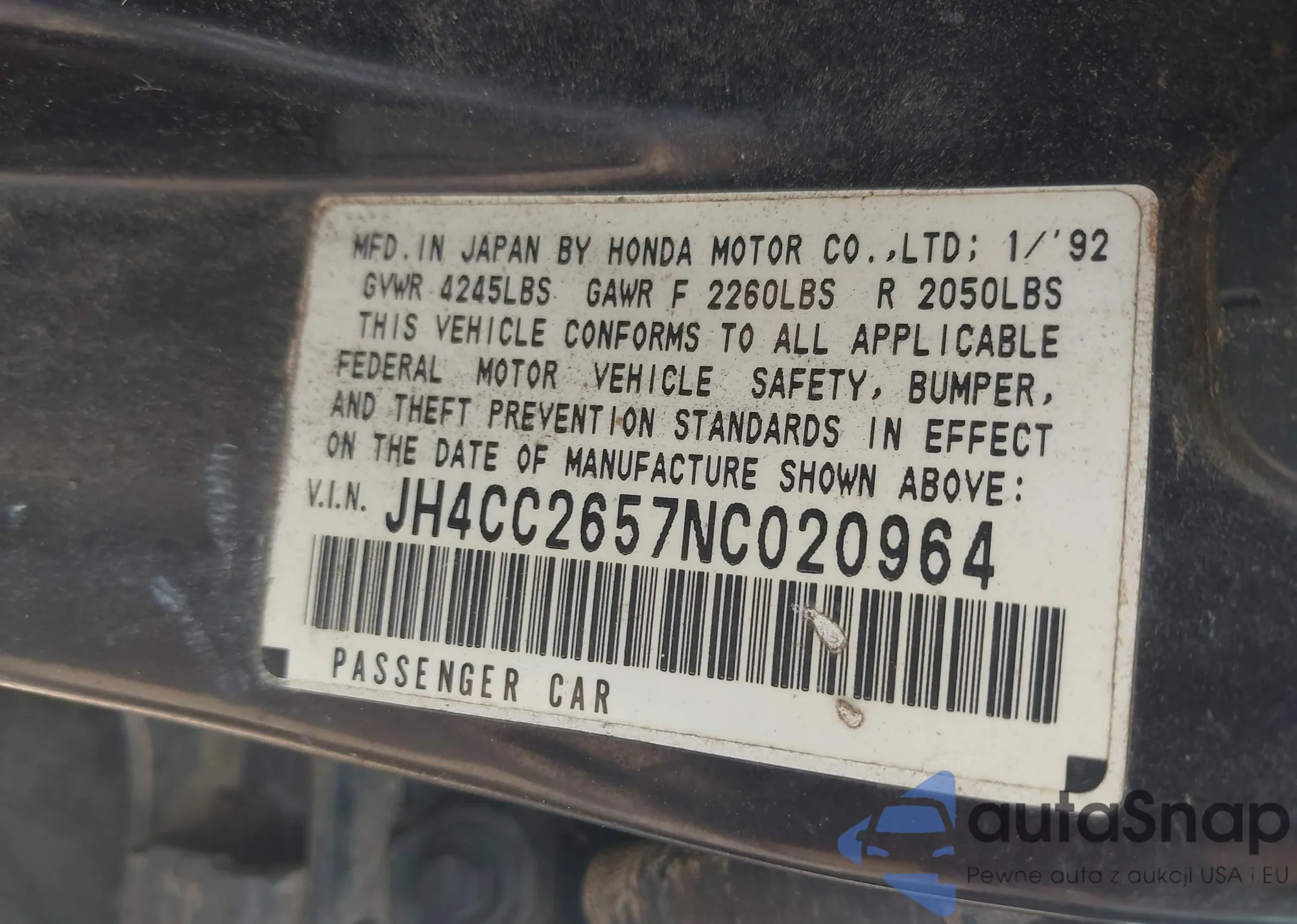 VIN: JH4CC2657NC020964