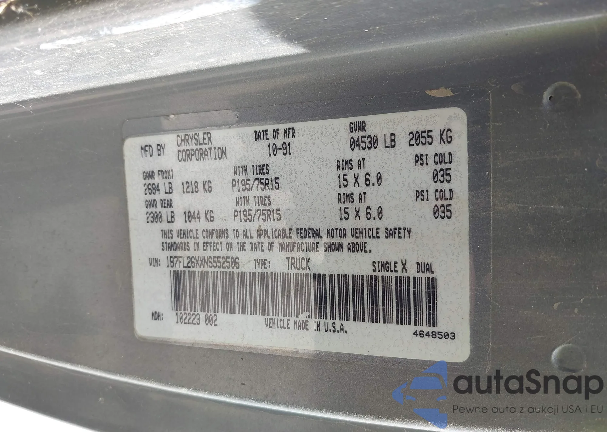 VIN: 1B7FL26XXNS552506