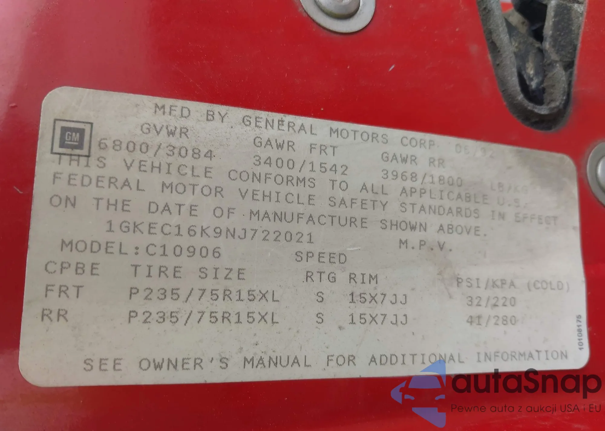 VIN: 1GKEC16K9NJ722021